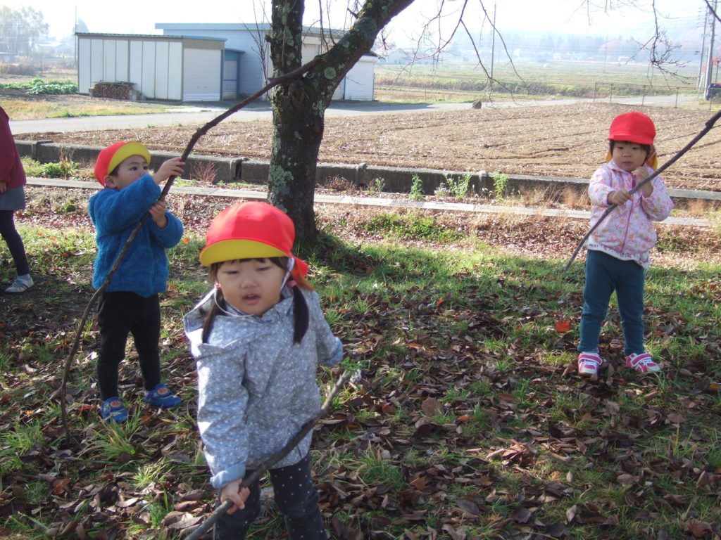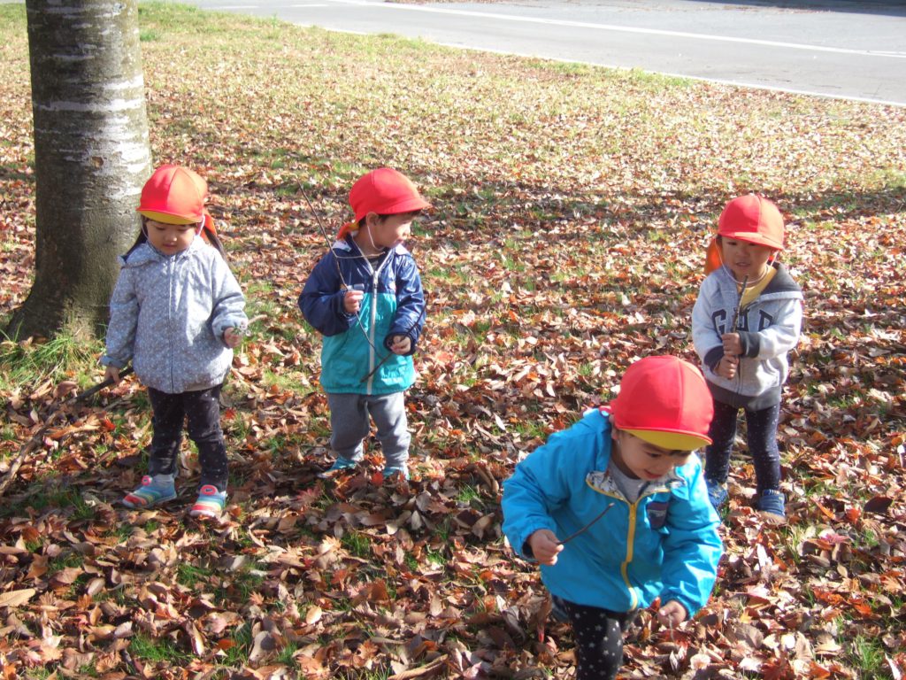 一人のお友だちが拾っていると、どんどん他のお友だちも集まってきて、枝拾いが始まりましたよ。