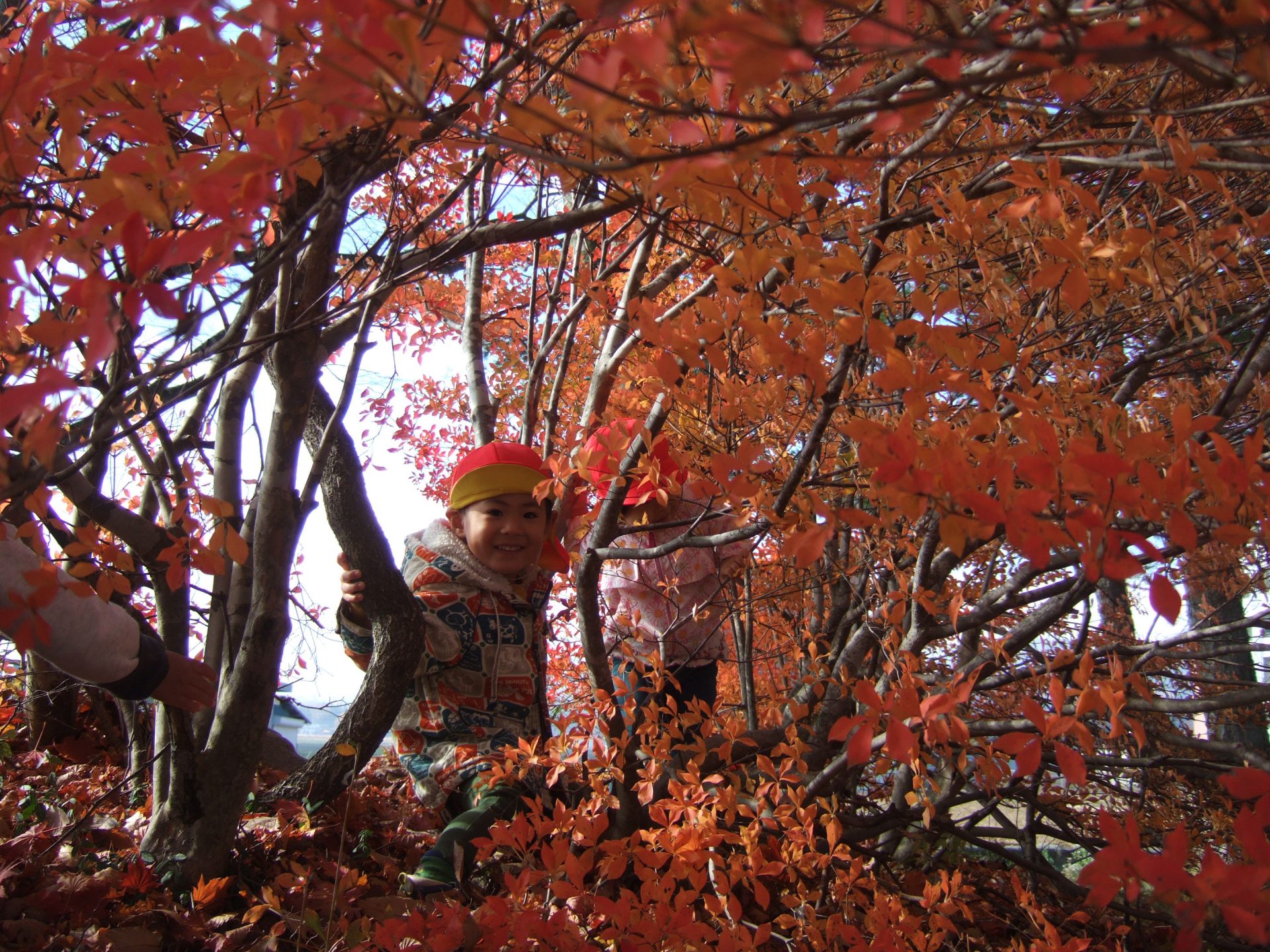 紅葉のトンネルから「ばー!」と可愛い声とともに出てきました。