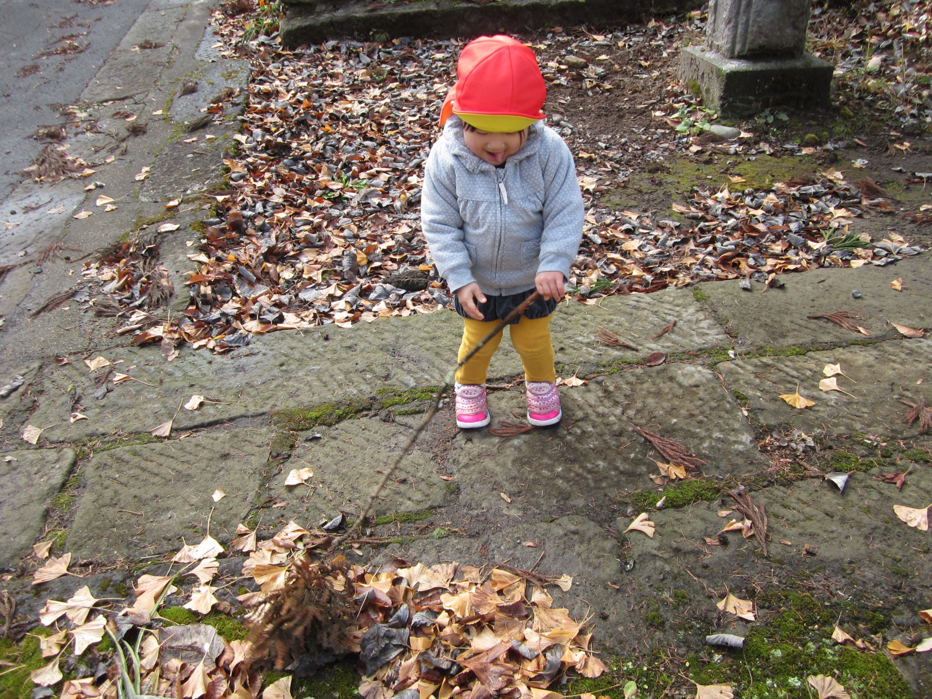 落ち葉を端っこに集めようと一生懸命掃く姿が見られました。