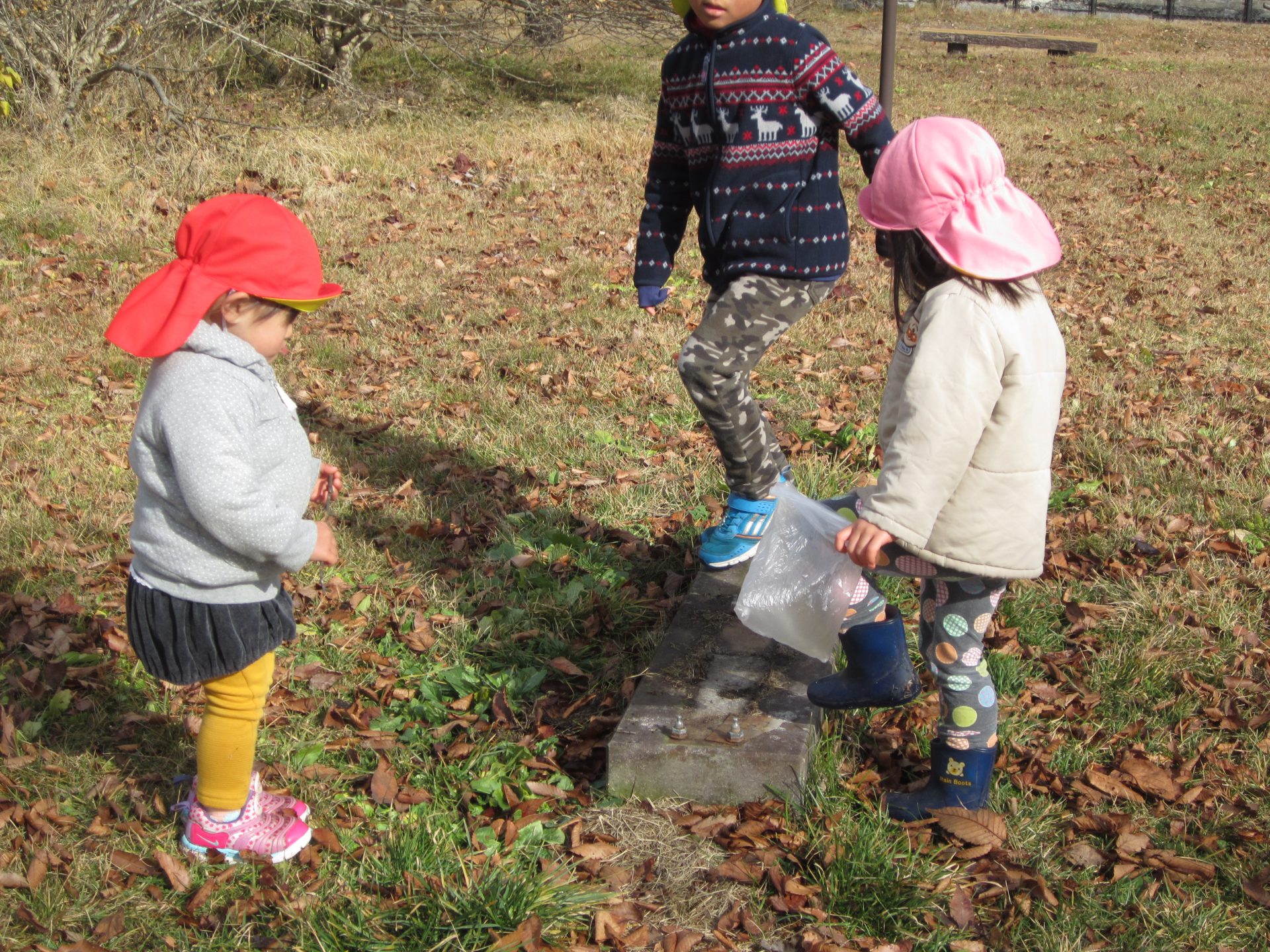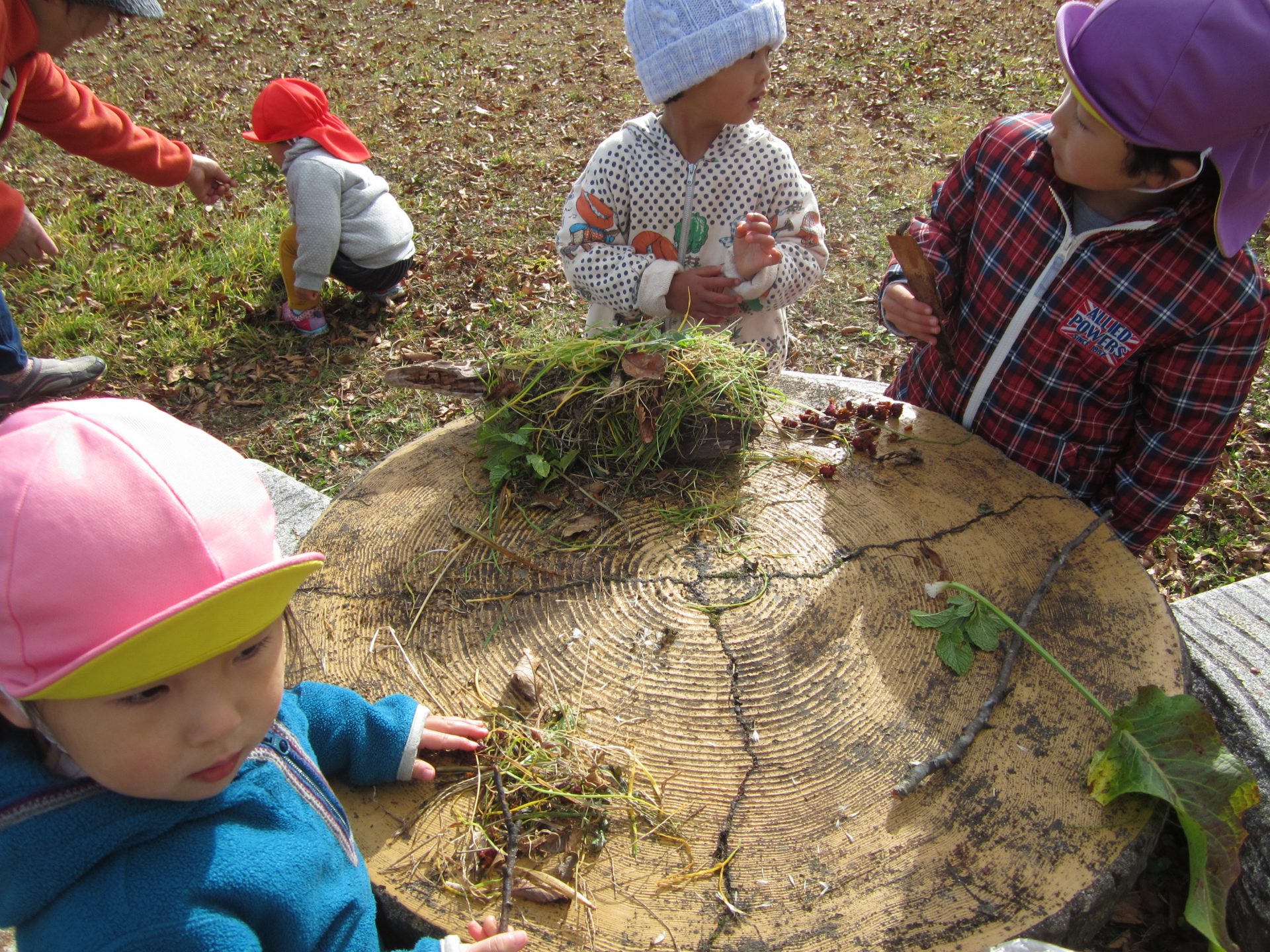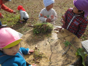 子どもたちで気づき、考え、発見をどんどん共有していく姿に驚きの日々です。そんな姿や友だちと遊ぶ姿を受け止めたり、保育者も視野を広げ、子どもたちがさらに自然の中で様々な気づき・遊びが出来るよう活動を深めていきたいです。