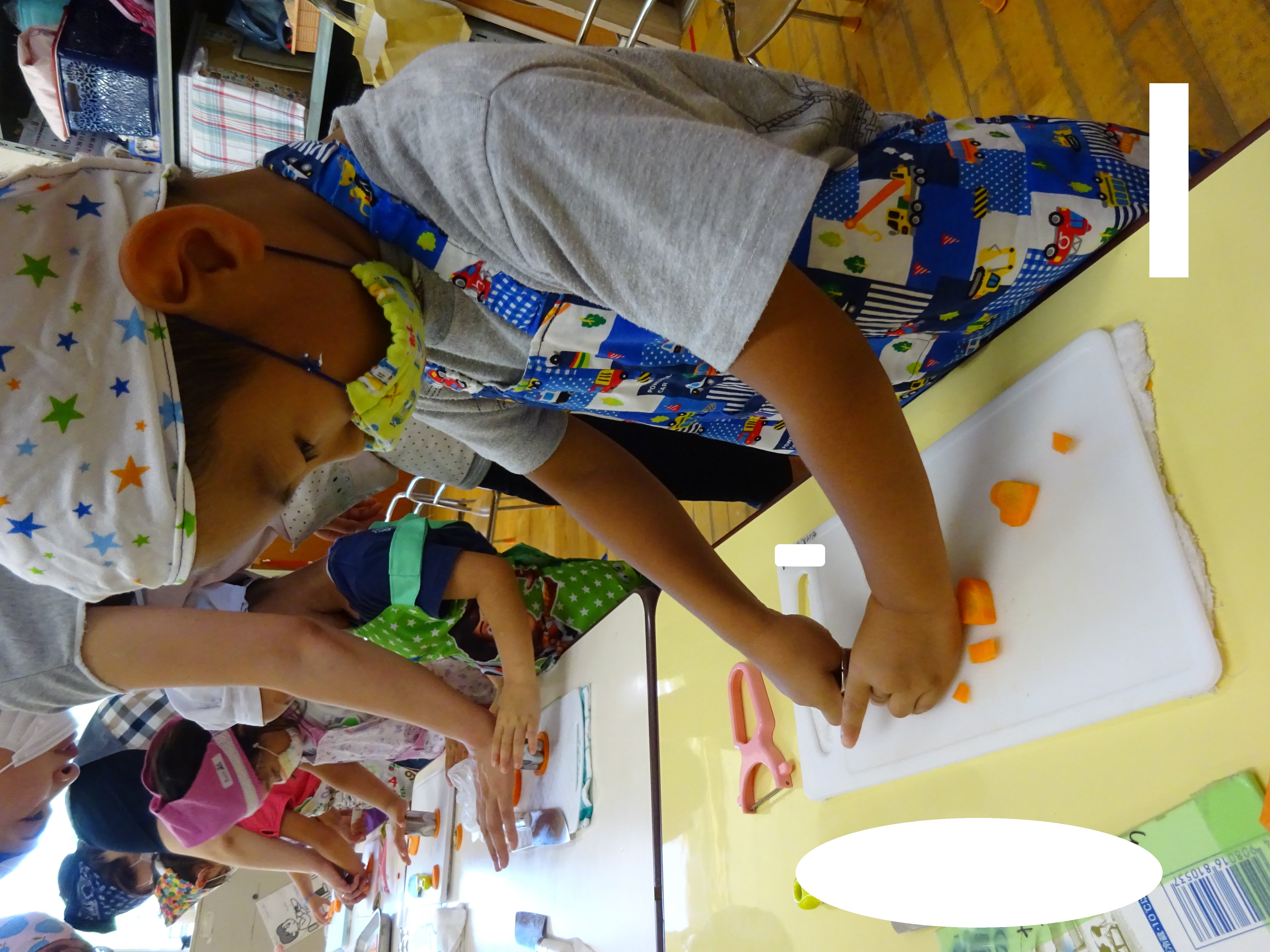 4歳児・・・ニンジンの皮むき、切る、型抜き。