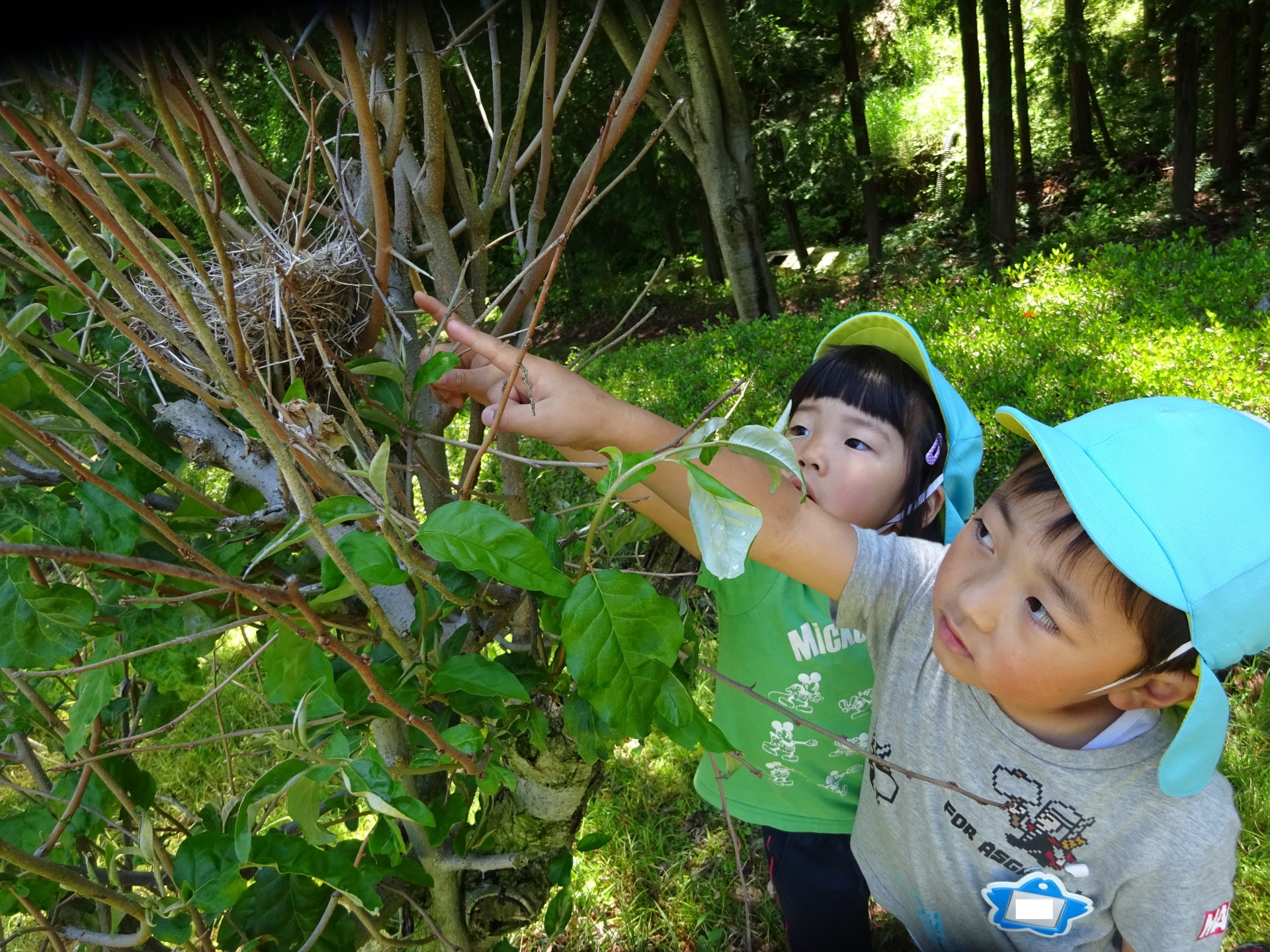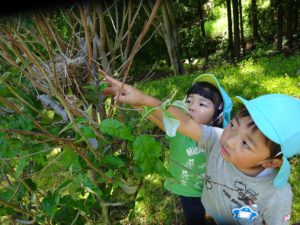 鳥の巣発見!「みてみて、鳥の巣あったよ~」「何の鳥がいたのかな? 中は空っぽだ」