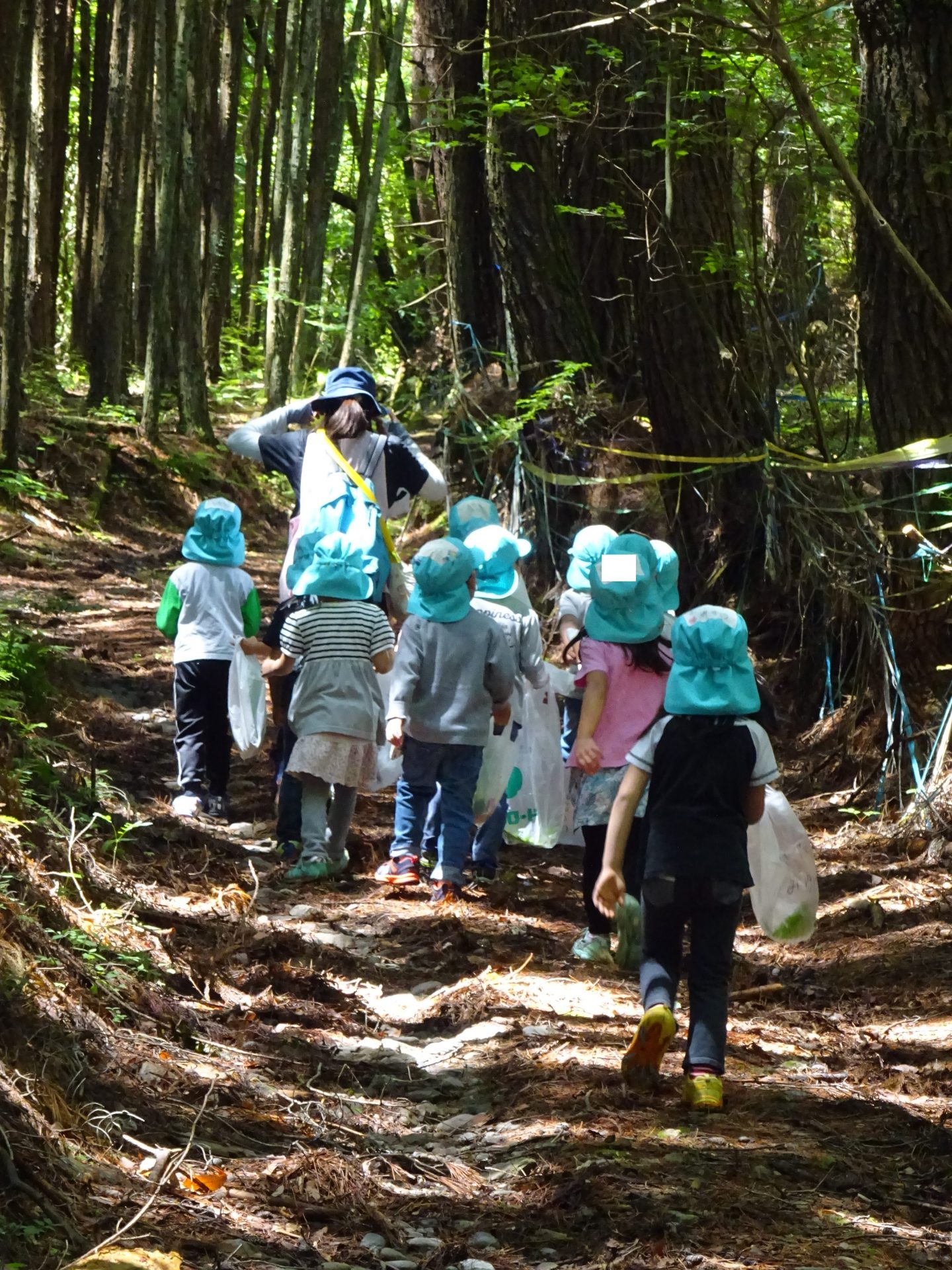 園の近くにある農村交流広場まで遠足へ行き、山道を探検する。