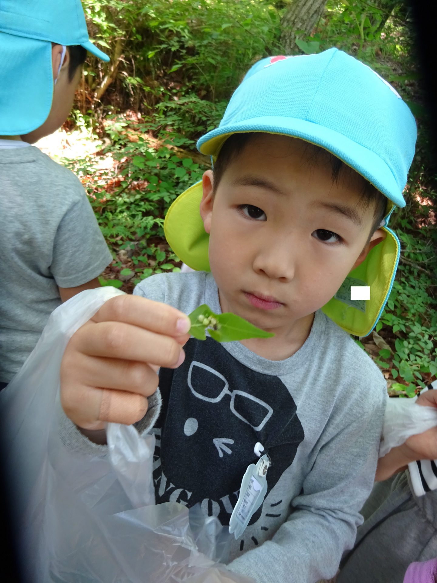 「葉っぱの裏に卵があるよ」「保育園に戻ったら図鑑で調べてみようね」