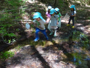 探検して見つけた動植物は園に持ち帰り、図鑑で調べていました。わからないものは調べてみるという姿に成長を感じ、こういった姿をこれからも大切にしていきたいと思いました。
