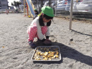 2歳児 戸外遊びを通して、季節の変化に気付いて欲しい。