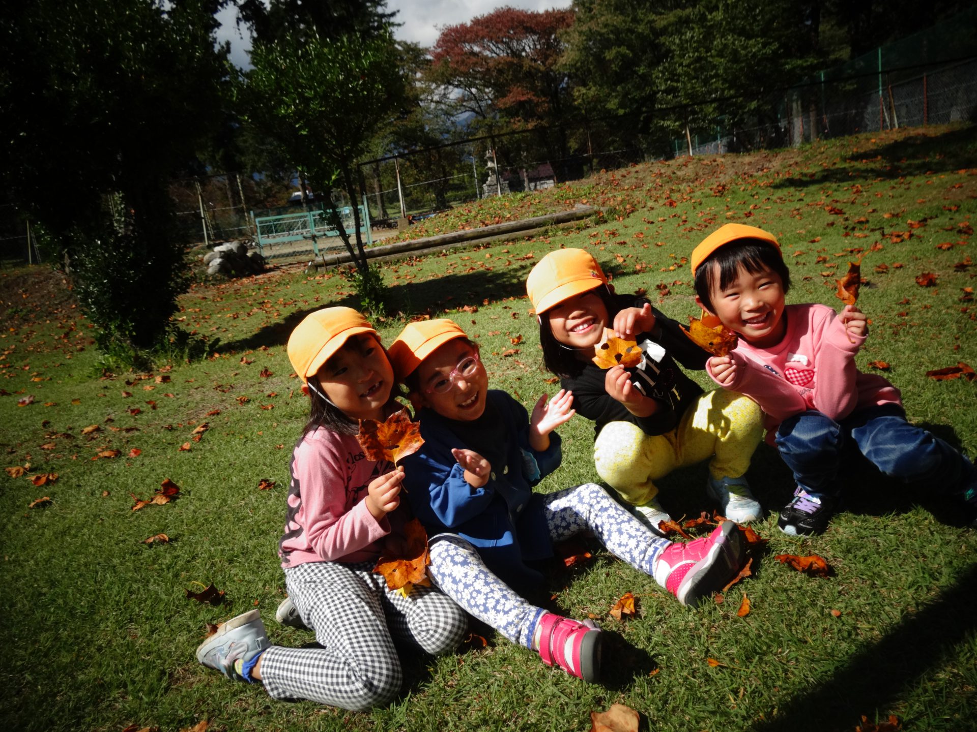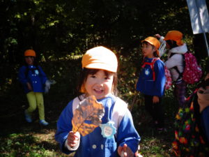 4歳児 秋の自然に触れながら、空のキレイさや、葉っぱの色の変化や感触等を実体験を通して五感で味わって欲しい。