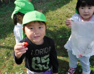 ・道中にもかきの木や畑の作物に気づき「かきだ!」「あれはなぁに?」と