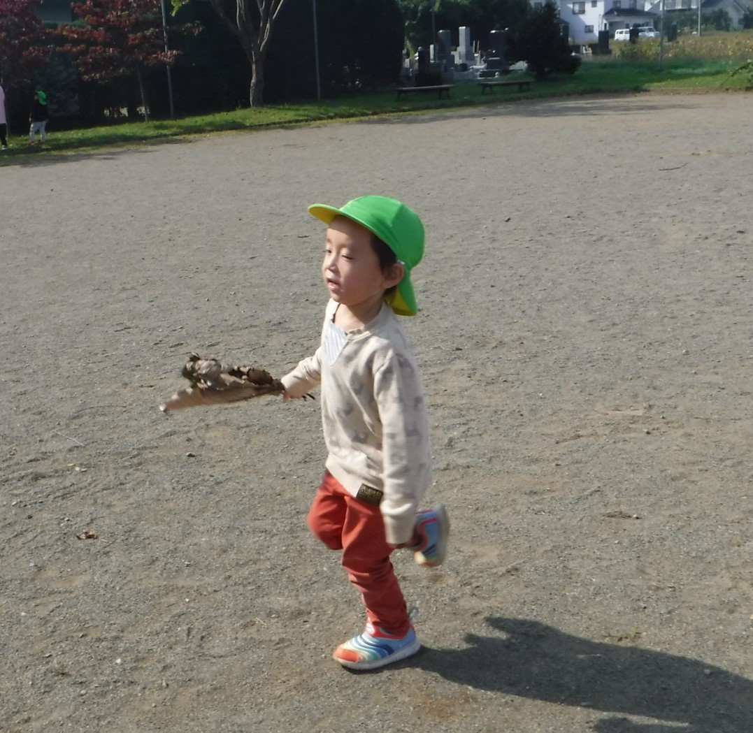 「はっぱの花束だよ!!」と、みんなに見せたくて走っていました(^^)