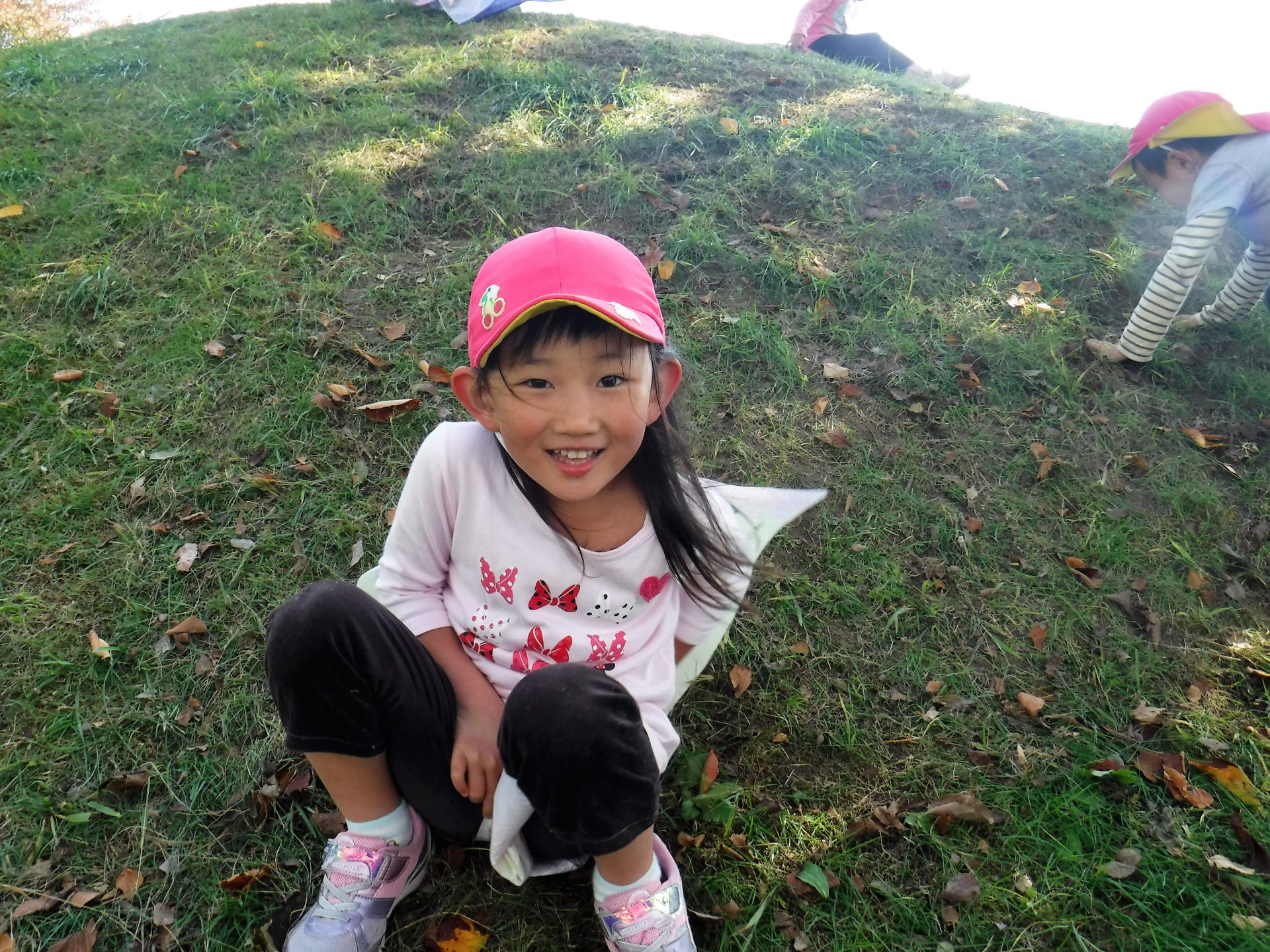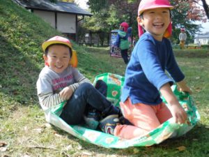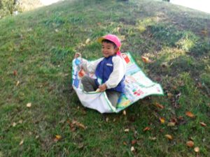 年中さんは山でシート滑りを楽しんできました