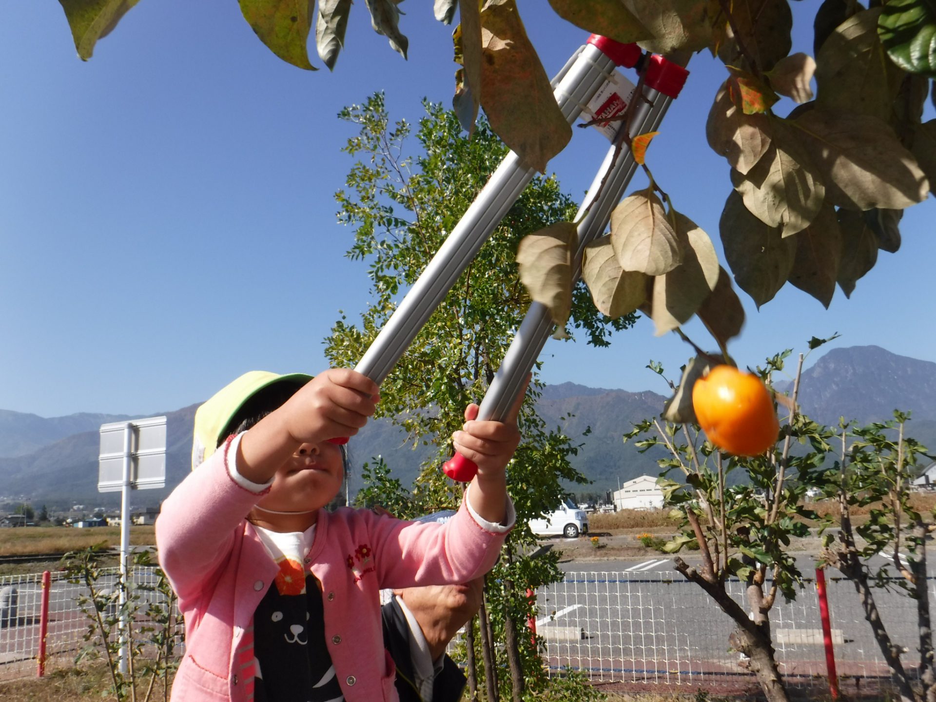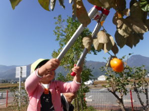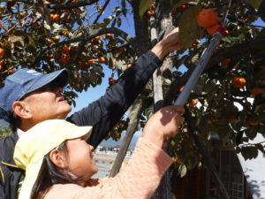 一人ひとりおじいちゃん先生に教えてもらって柿を収穫。