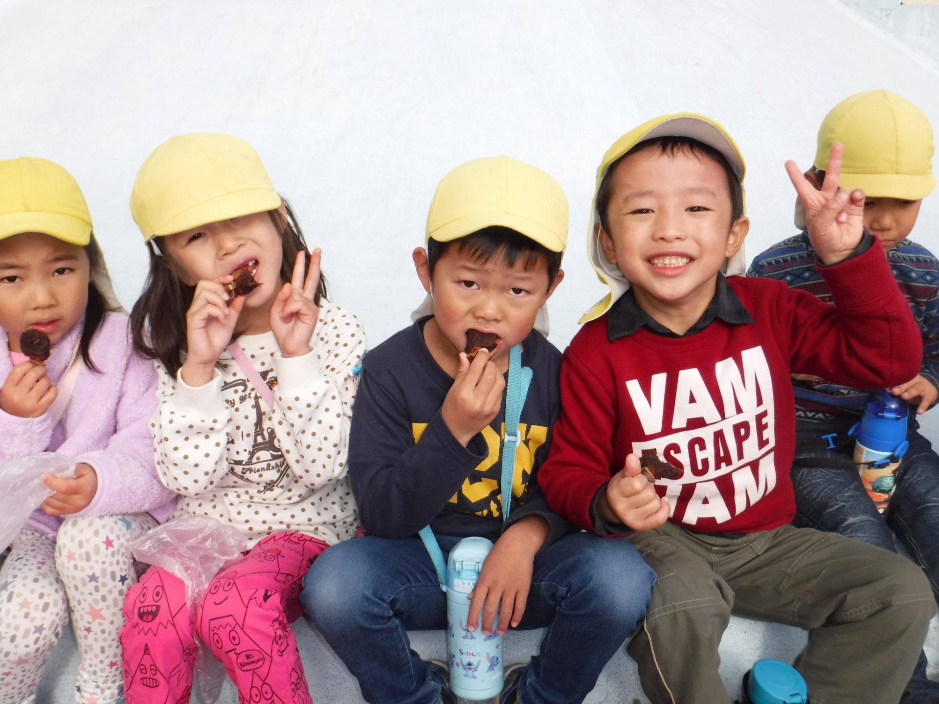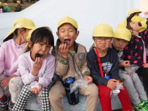 目的地の公園で、お楽しみ味見。「あま~い」「やわらかくてうまい」等々感想を言いながら、みんな完食。よく食べました。