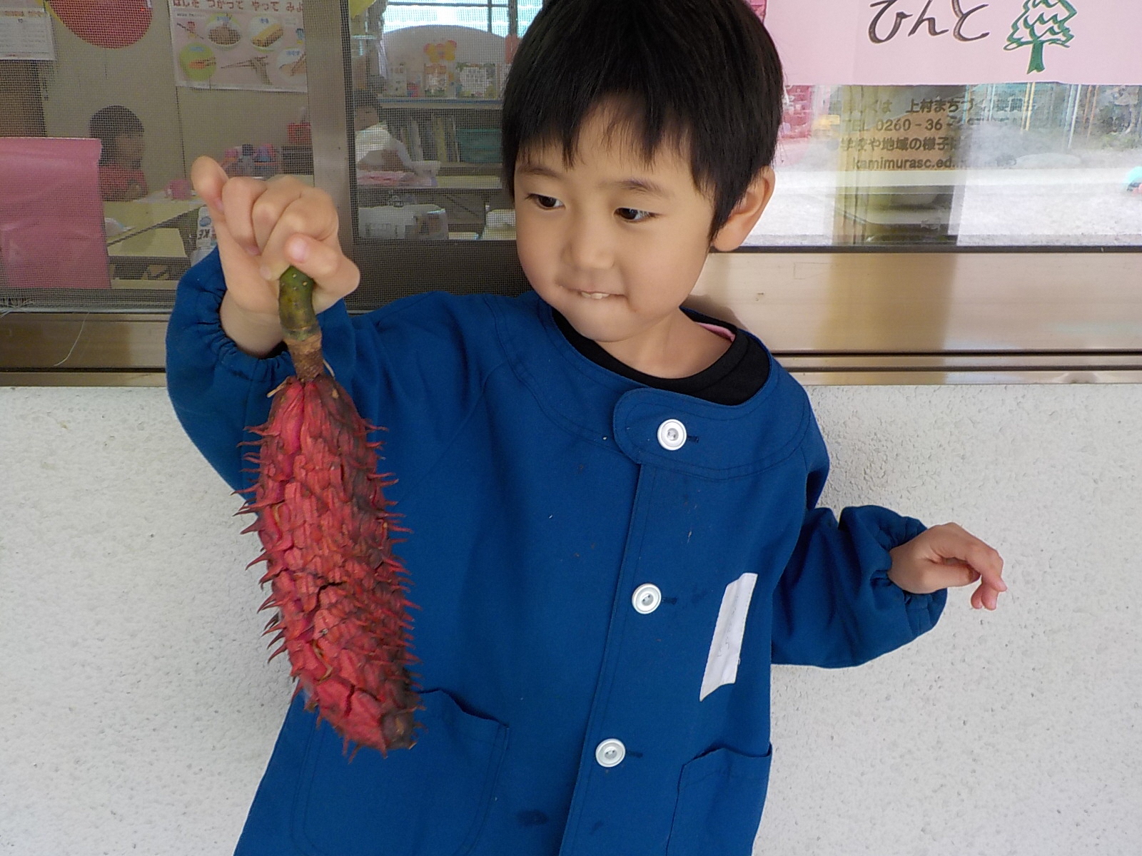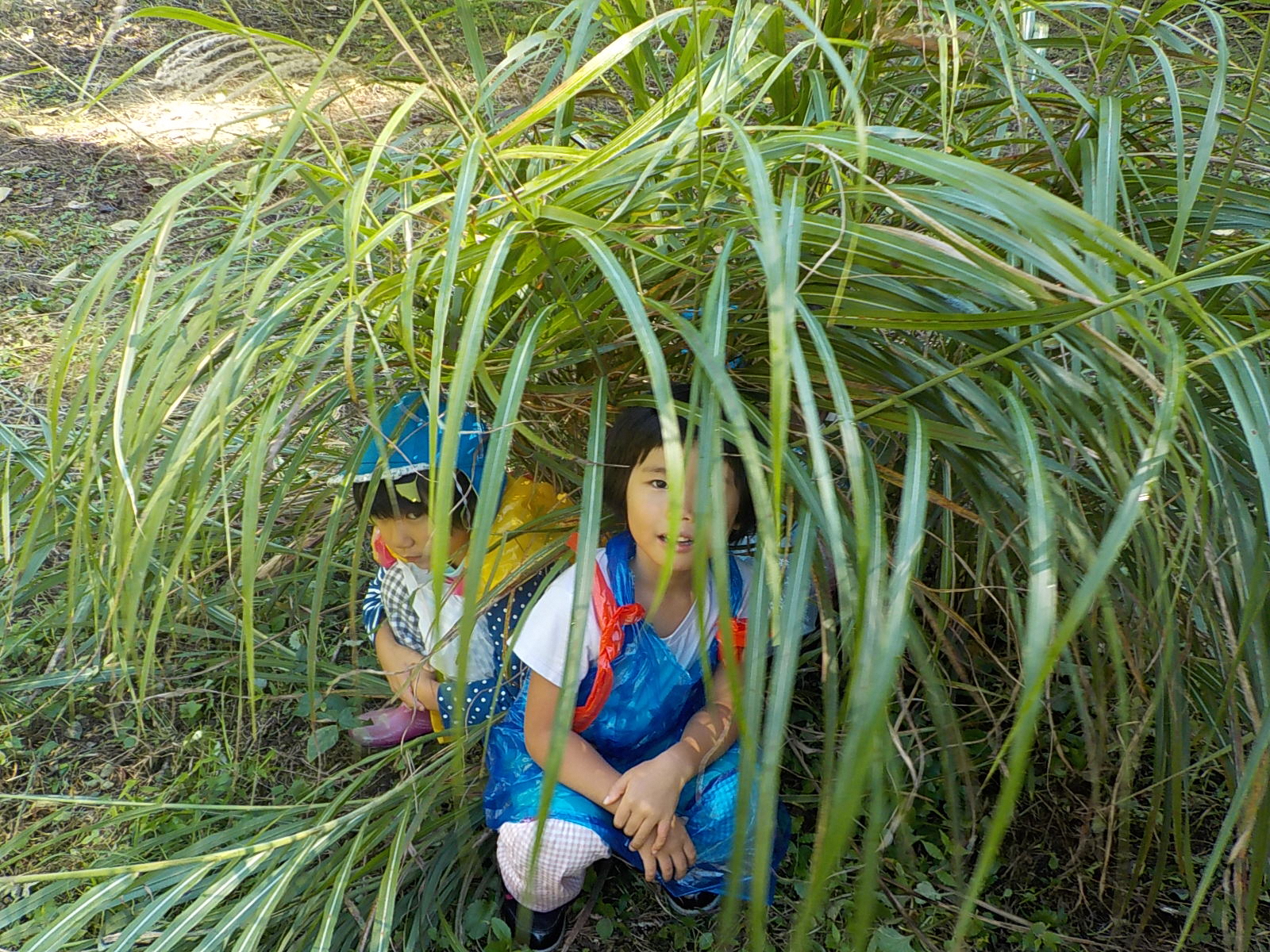 何をして遊ぼうかな~。裏山には魅力的な宝物がいっぱい!ワクワクしちゃう。