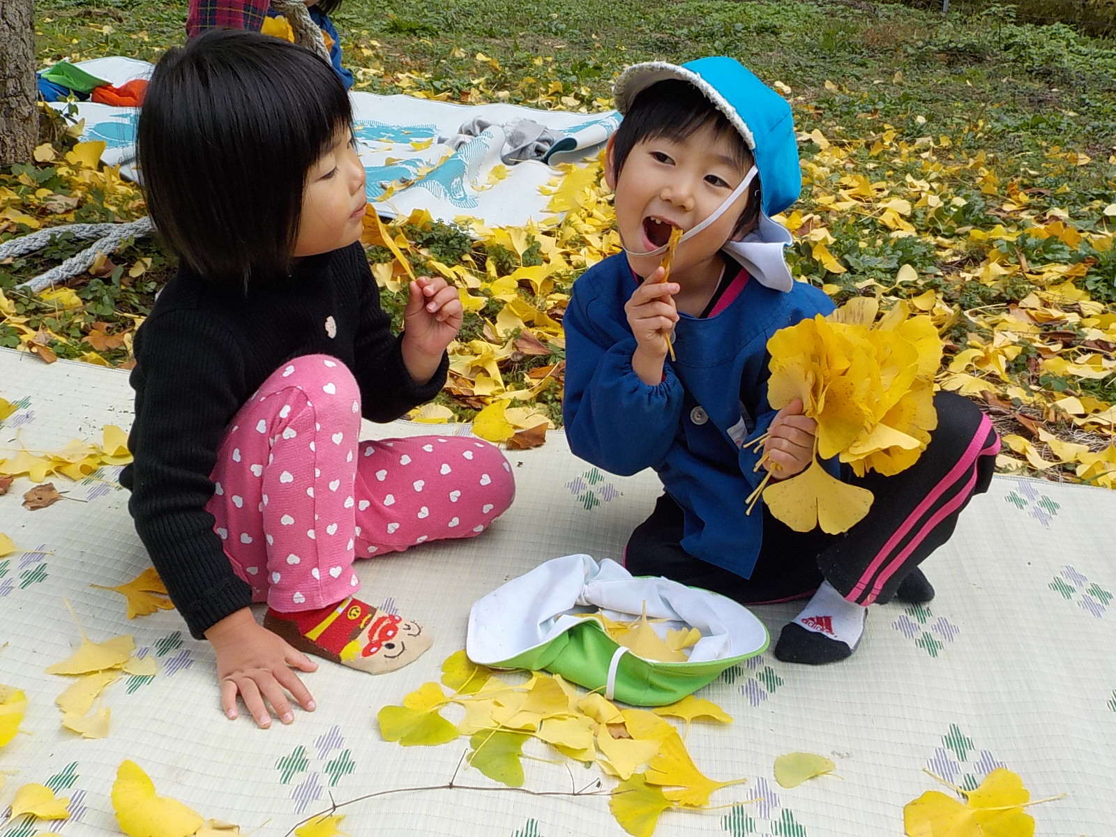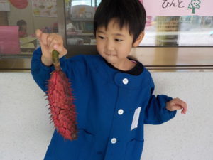 *自然の中にはいろいろな魅力的な遊びがいっぱいあります。自分の好きな遊びを十分満足するまで遊び込める裏山遊びの時間を大切にしていきたいと思います。