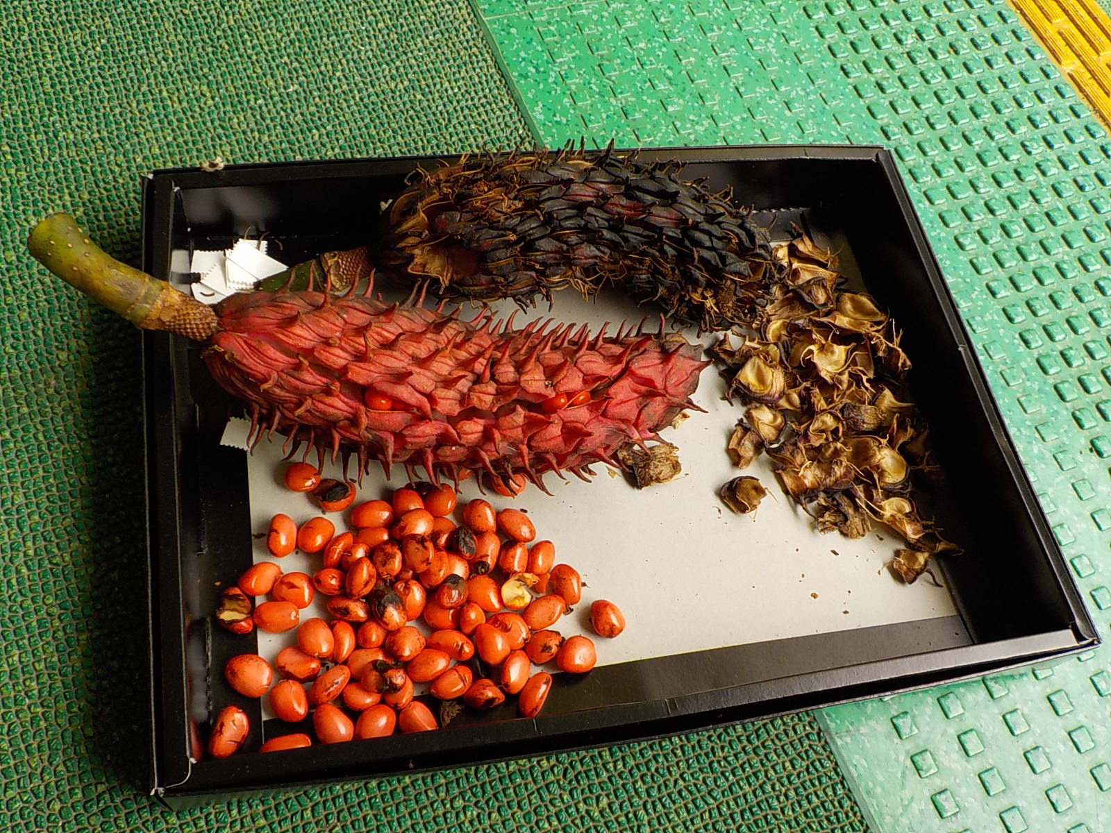 この実は何?とげとげしてるし・・。色も赤くて・・。ちょっと怖い。