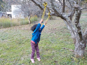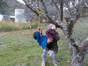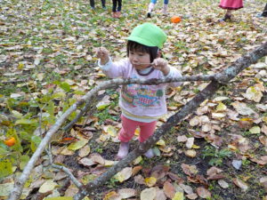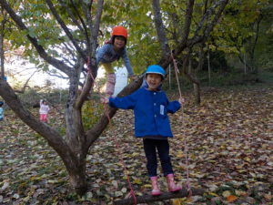 *園庭の遊具では尻込みしてしまう子でも、自然の中では「自分からやってみよう!」とする勇気が不思議と湧いてくるみたいです。夢中になって遊ぶ中で、「おもしろそう!」「やってみよう!」とする意欲が持てることや、「出来た!」「やった~!」という達成感を味わってほしいと思います。