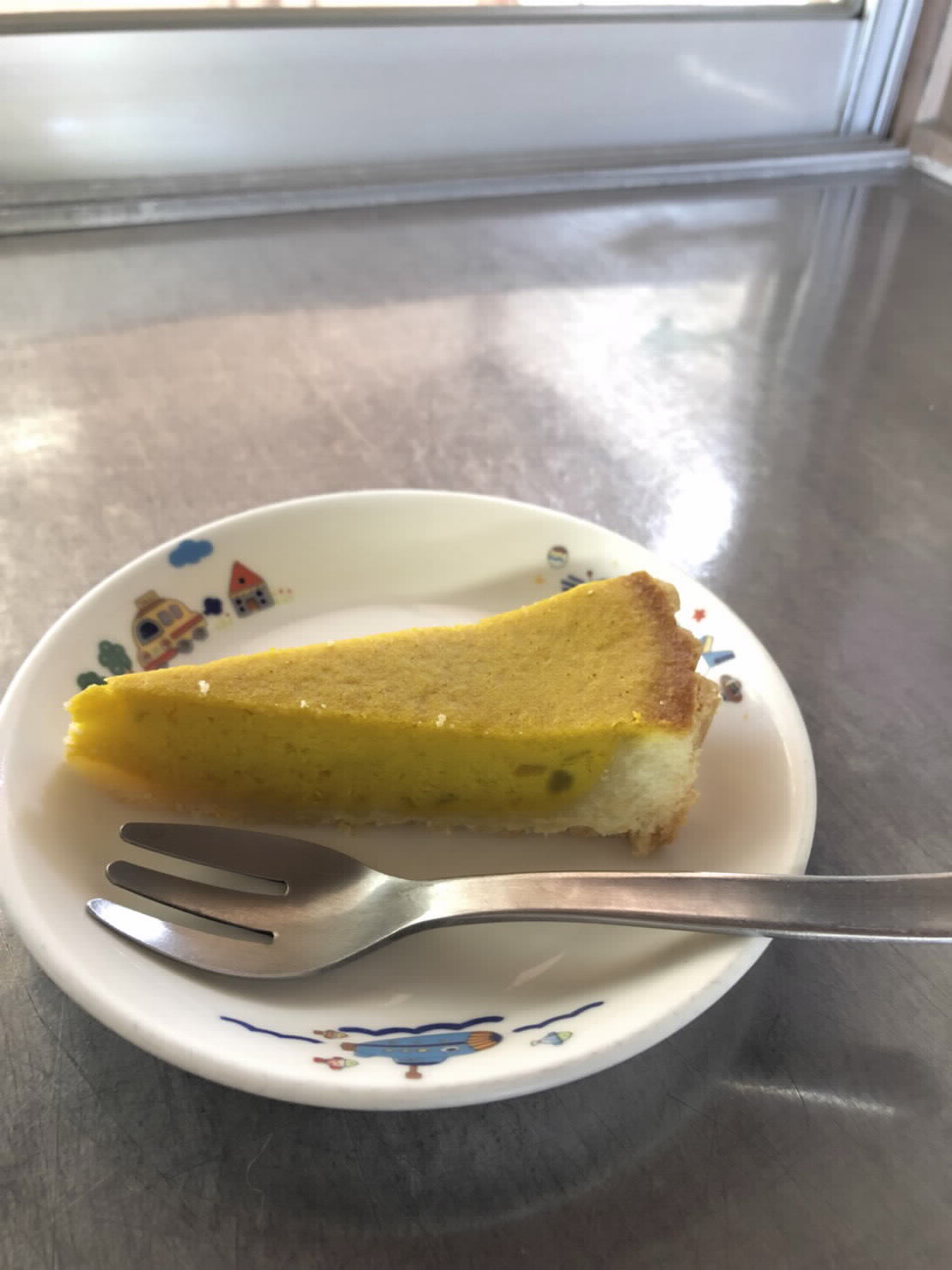 とってもおいしそうな給食の先生オリジナルのかぼちゃタルト。