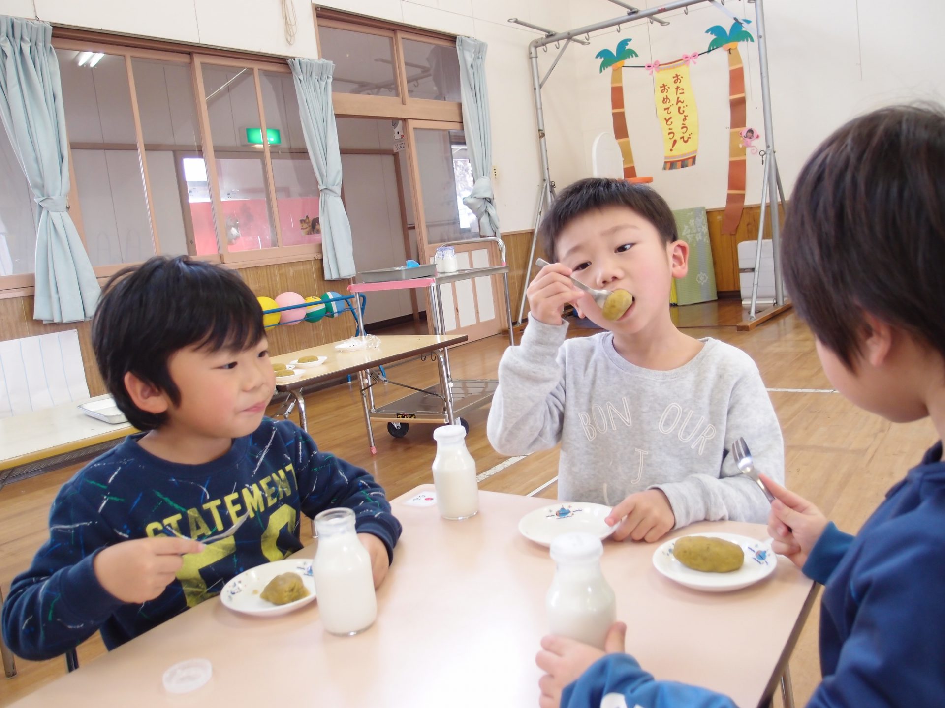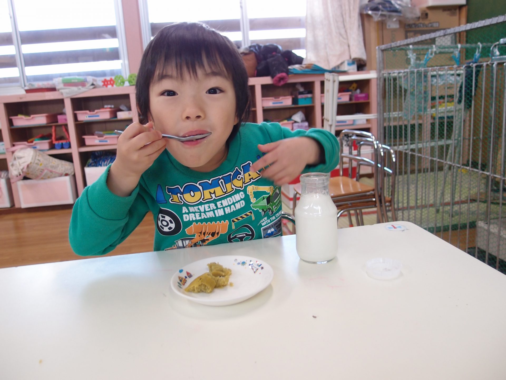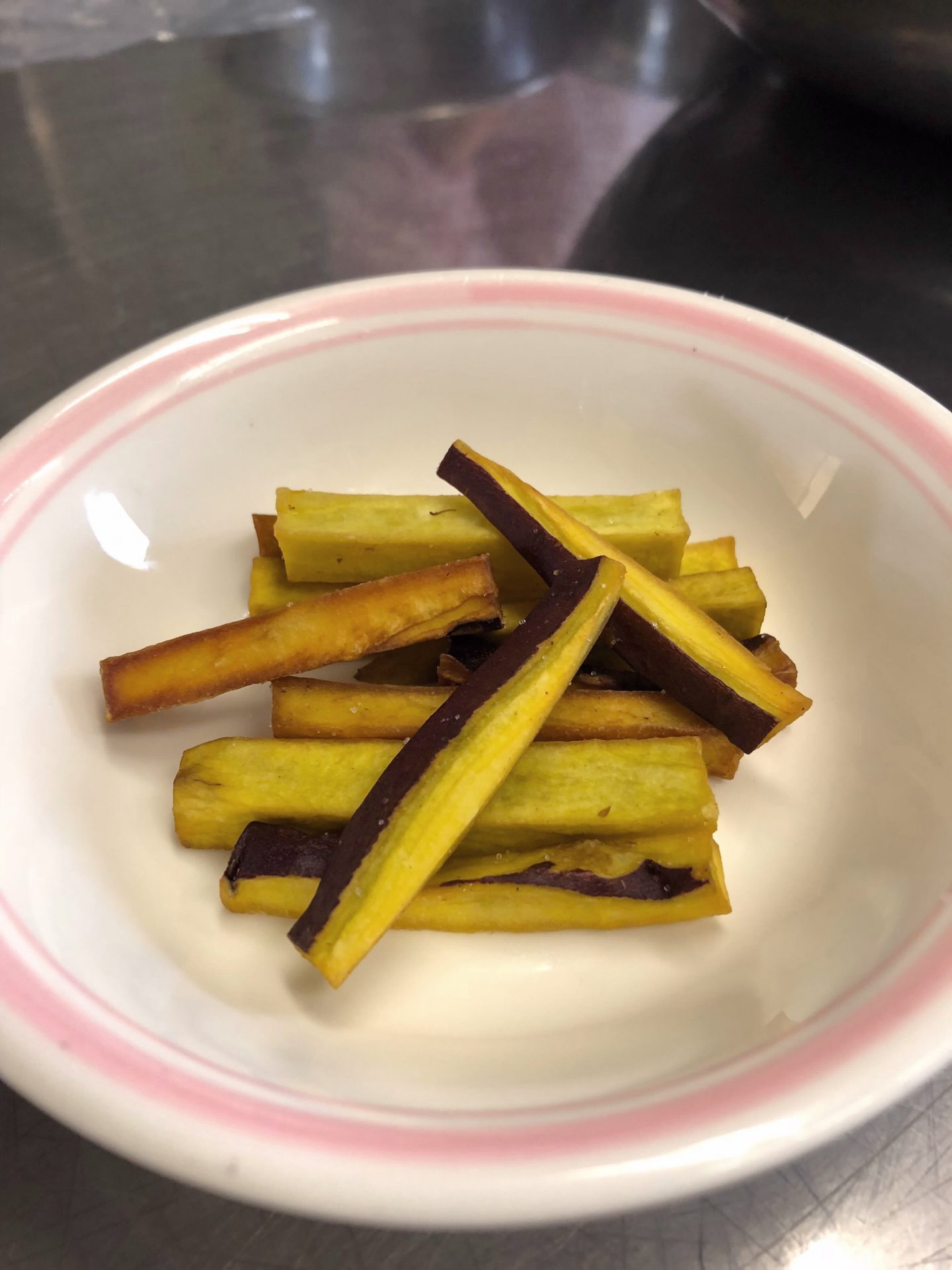 今日はたくさん楽しんできたさつま芋を使った最後のメニューとして、特別におやつを変更!