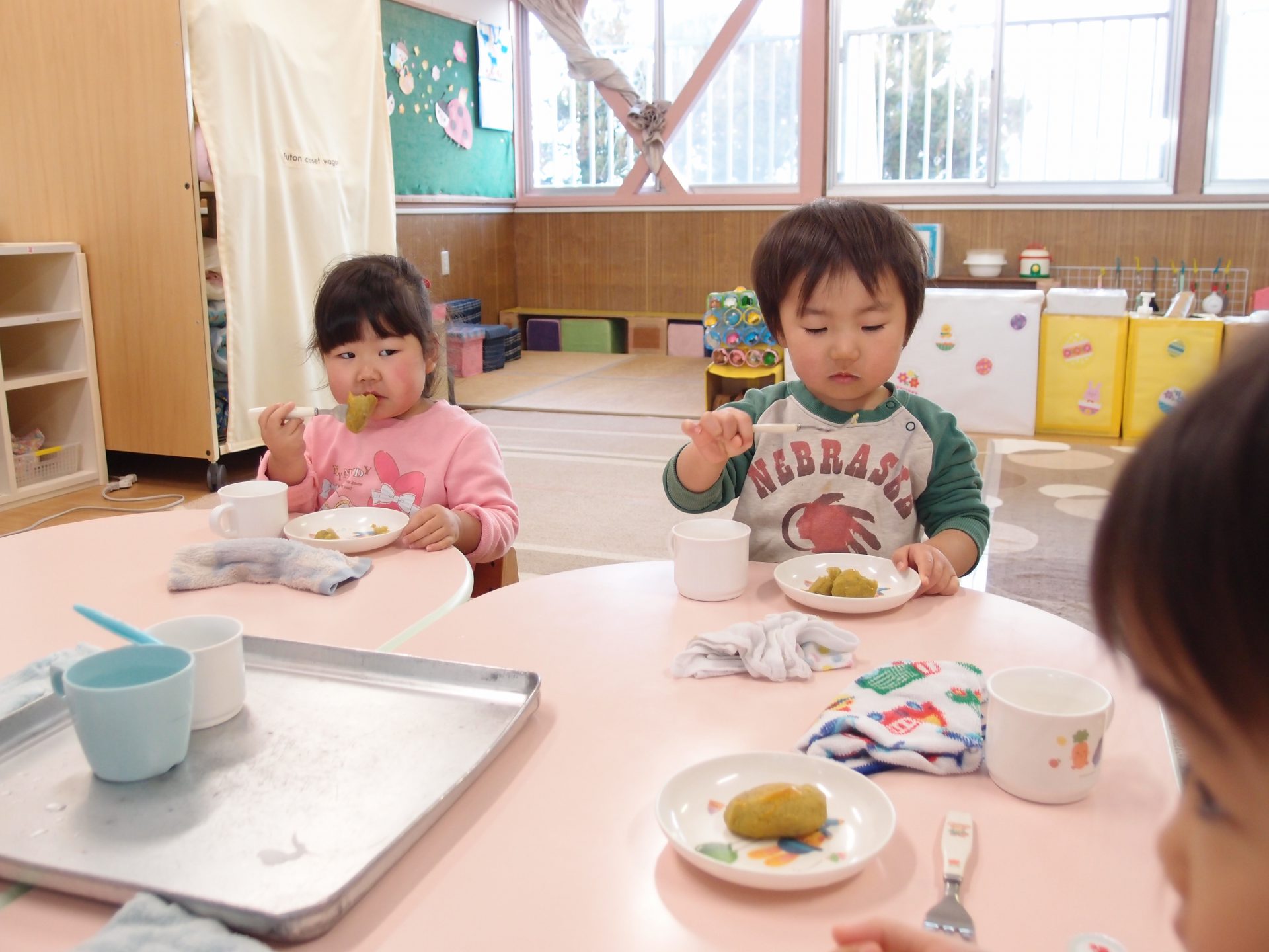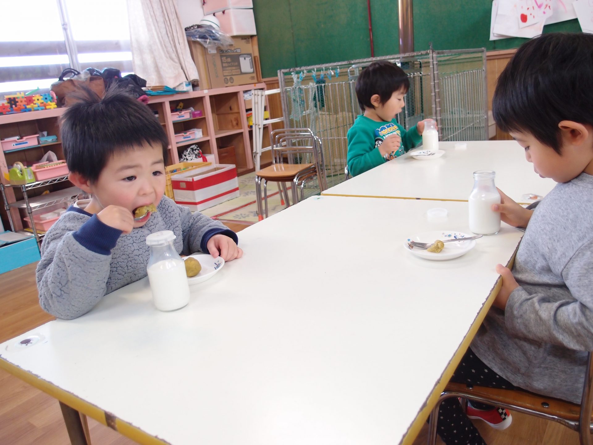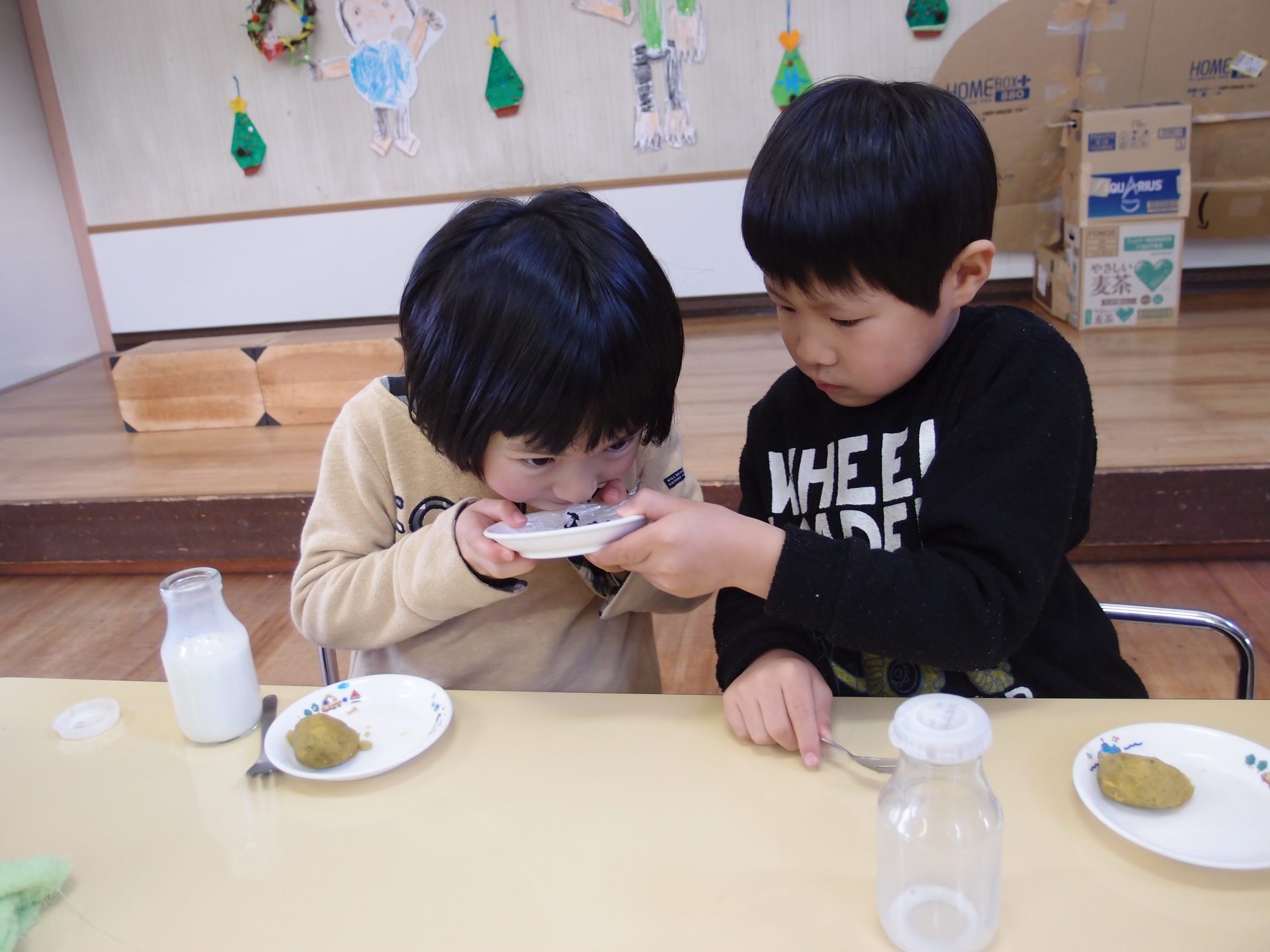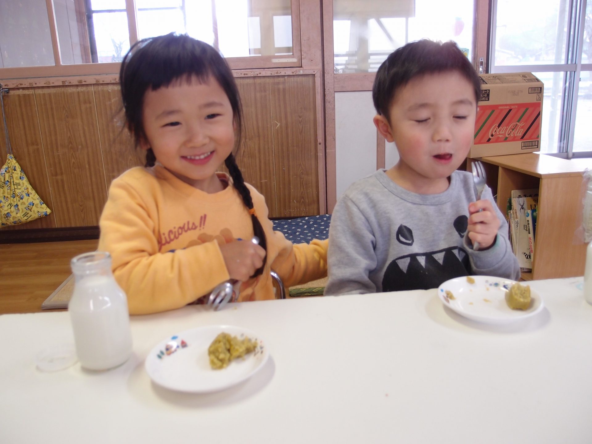 今日はたくさん楽しんできたさつま芋を使った最後のメニューとして、特別におやつを変更!