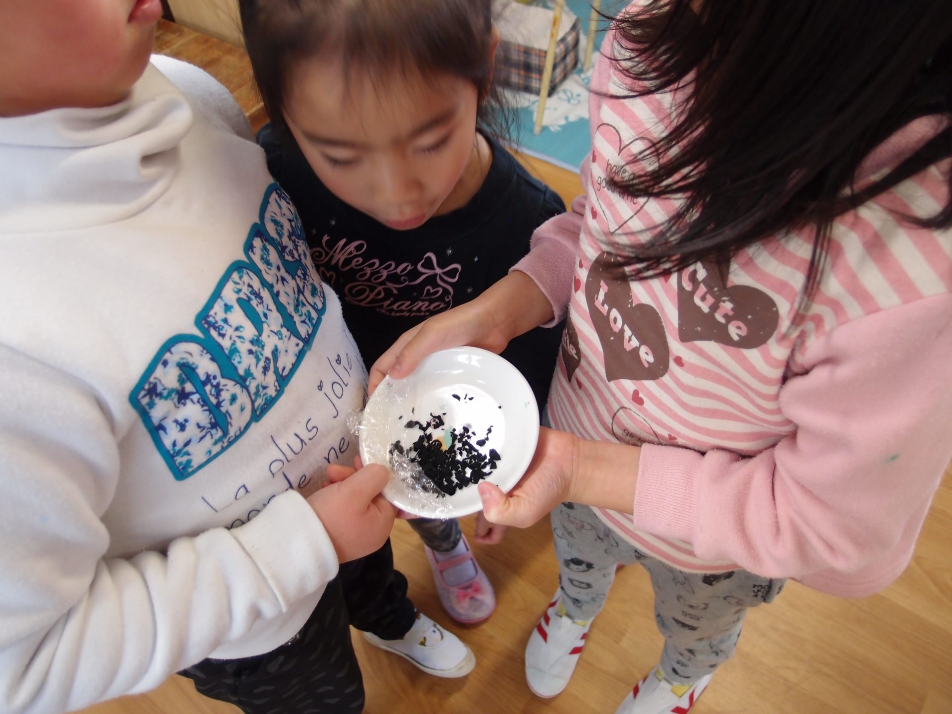 するとすぐに、年長さんが年少さんや未満児さんのクラスに持っていき、わかめを紹介してくれました。