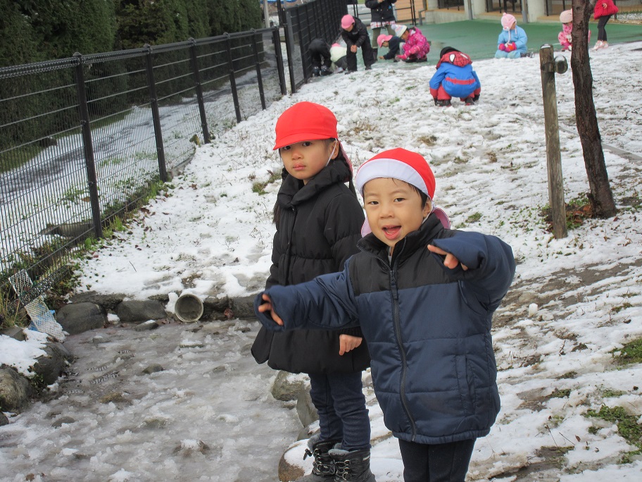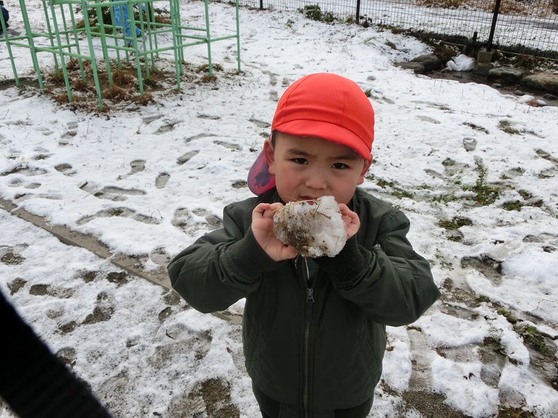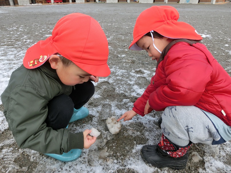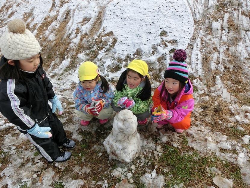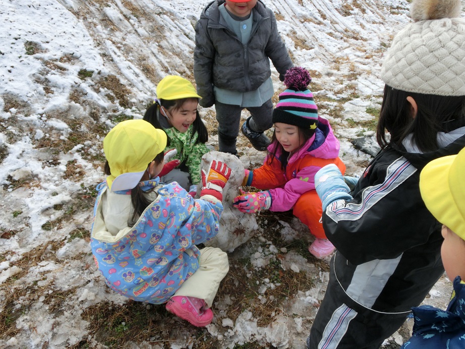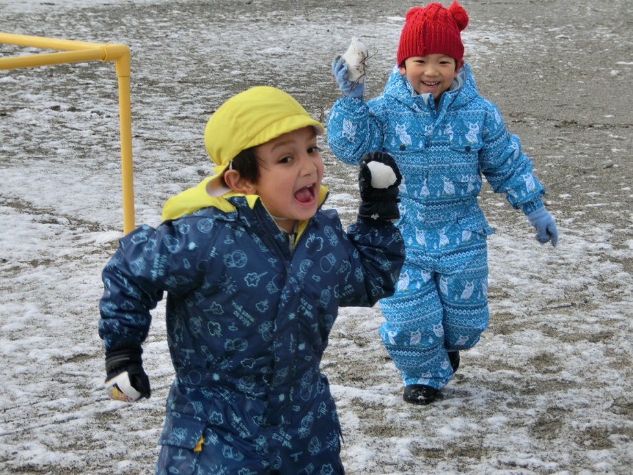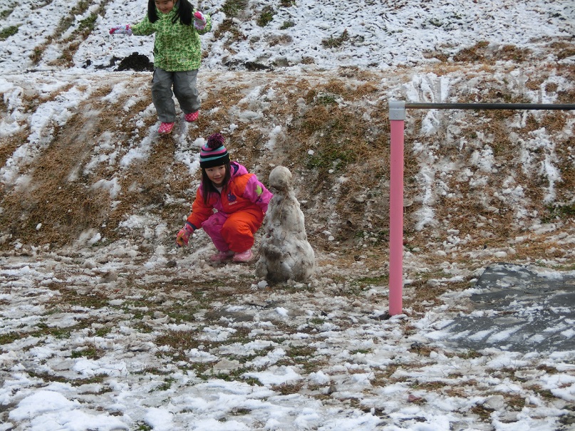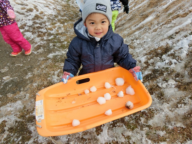 少ない雪ですが雪だるまを作ったり雪玉を作ったり少ないなりに工夫して遊んでいました。
