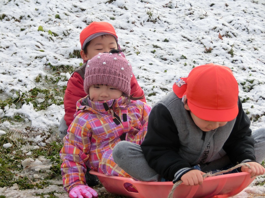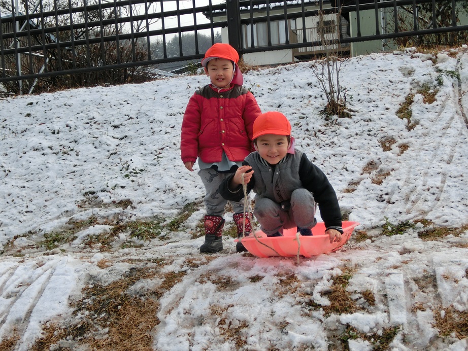 南信はあまり雪は多くはないのですが少しでも雪が降ると子ども達は大喜び!今朝は待望の雪が園庭に!