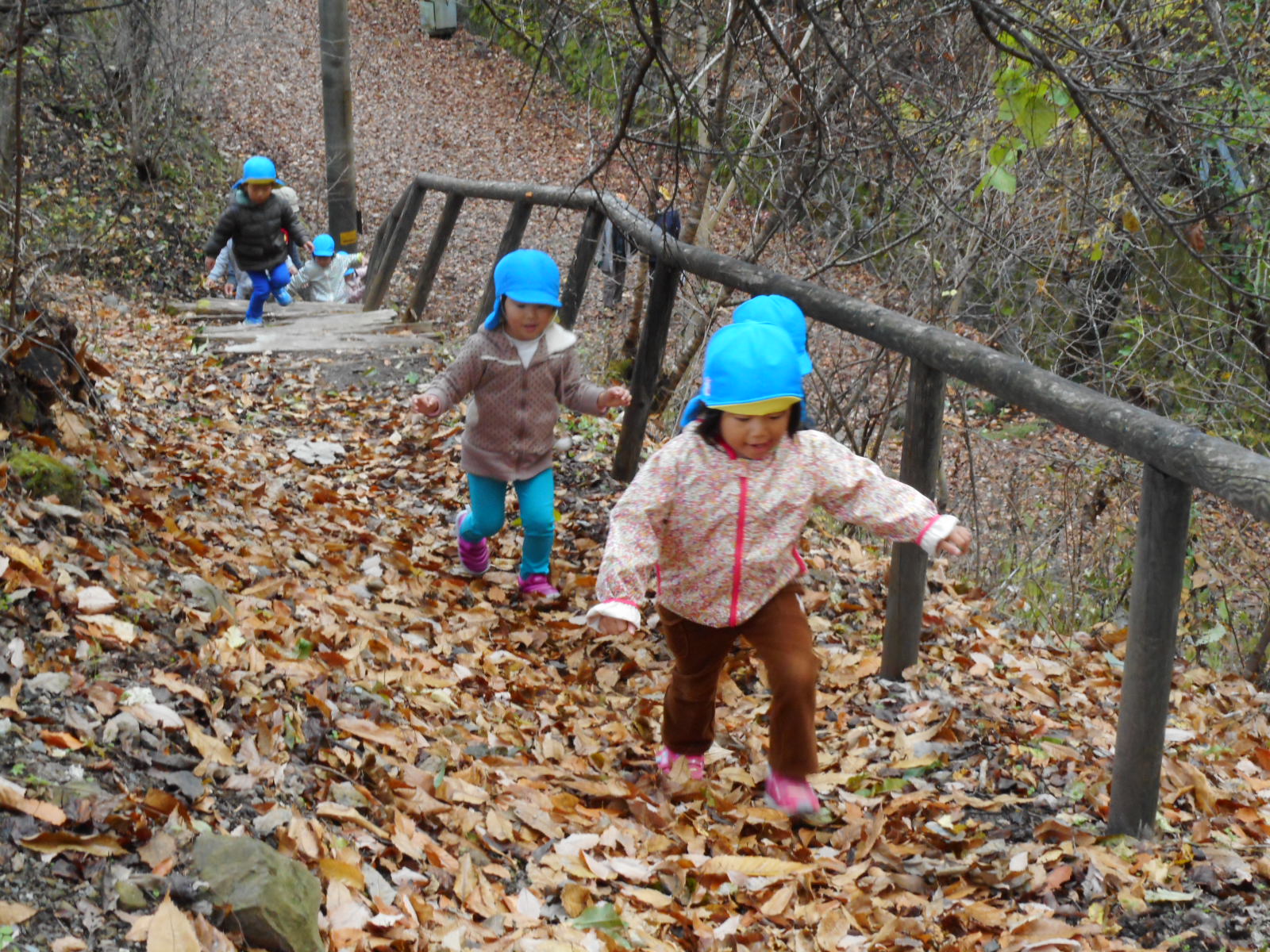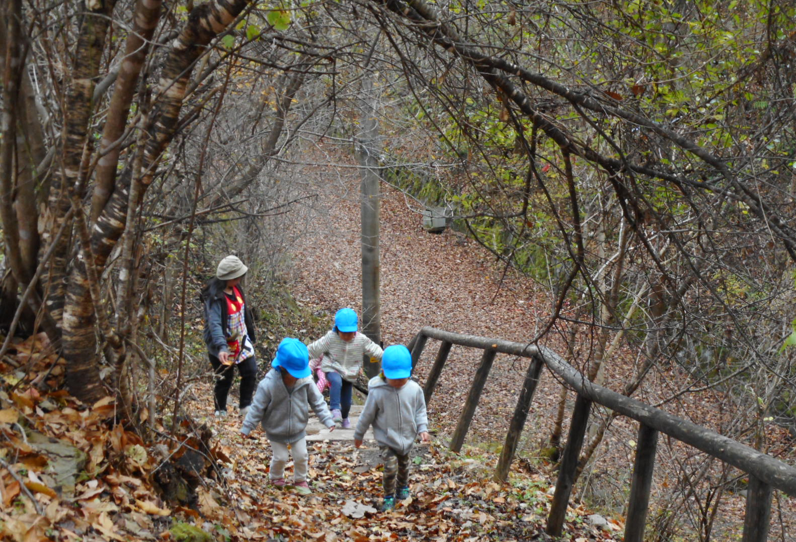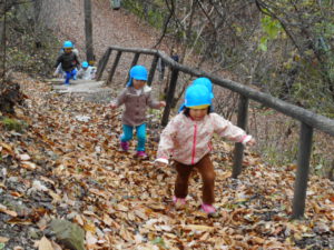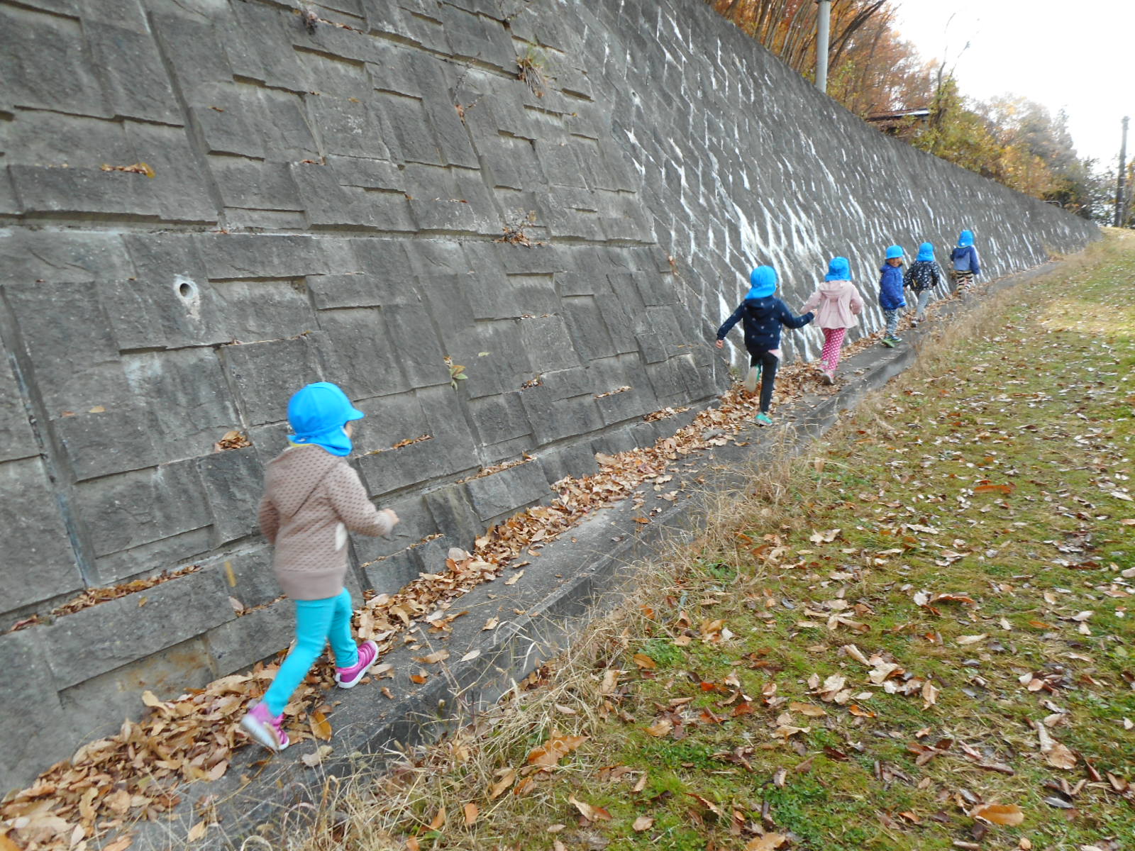 秋の園外保育はたくさんの発見があります。見つけることだけでなく、足の裏から感じたり、肌で風や気候を感じたり、匂いに気づいたり、外にいるだけでたくさんの刺激があります。寒い冬に向けてたくさんの秋を感じながら、楽しく戸外で過ごしたいです。