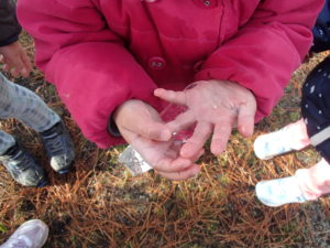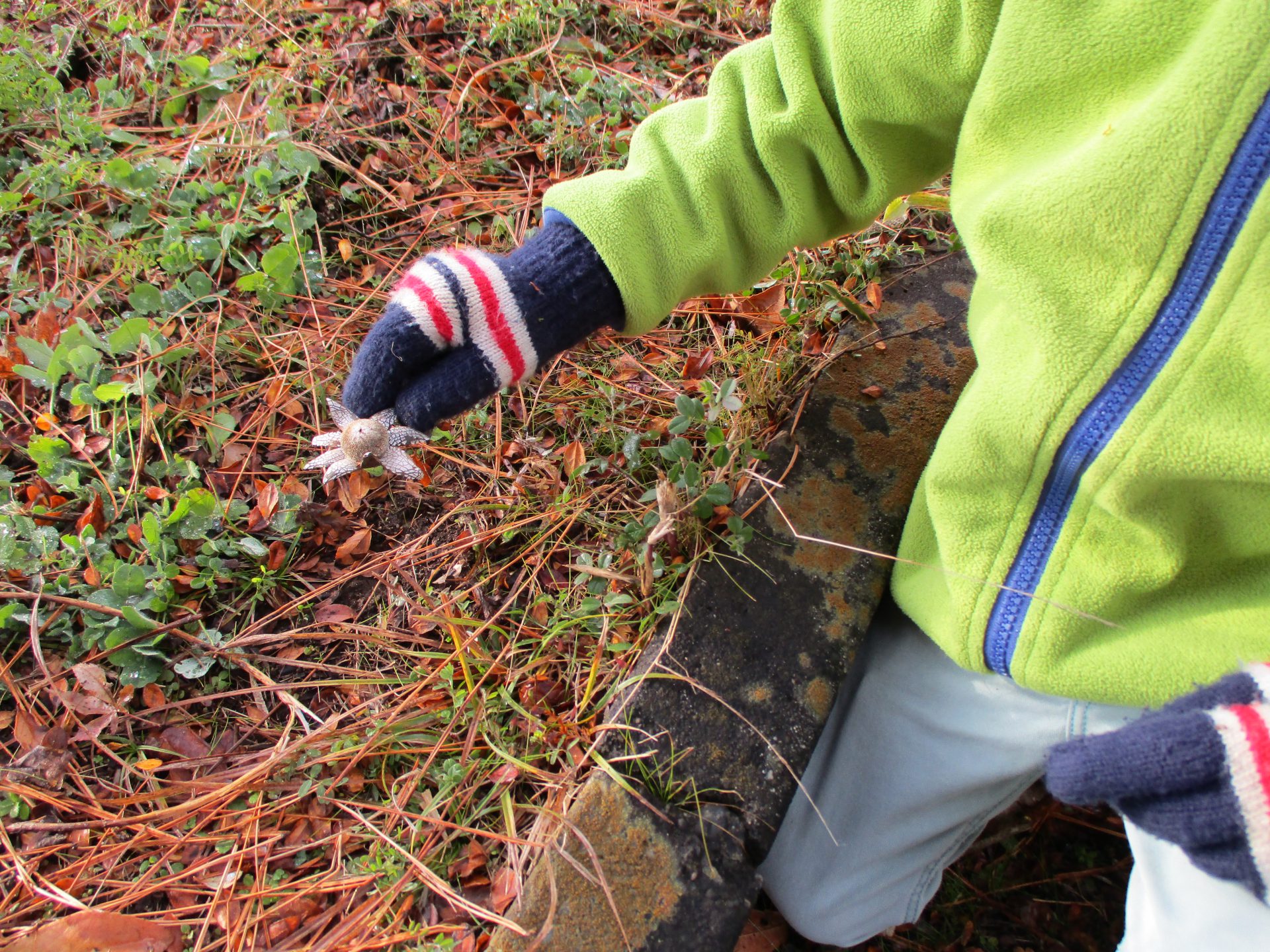 冬も近づいたある日、年中児さんがいつものように園庭を散策していると、今まで見たこともない物を発見!