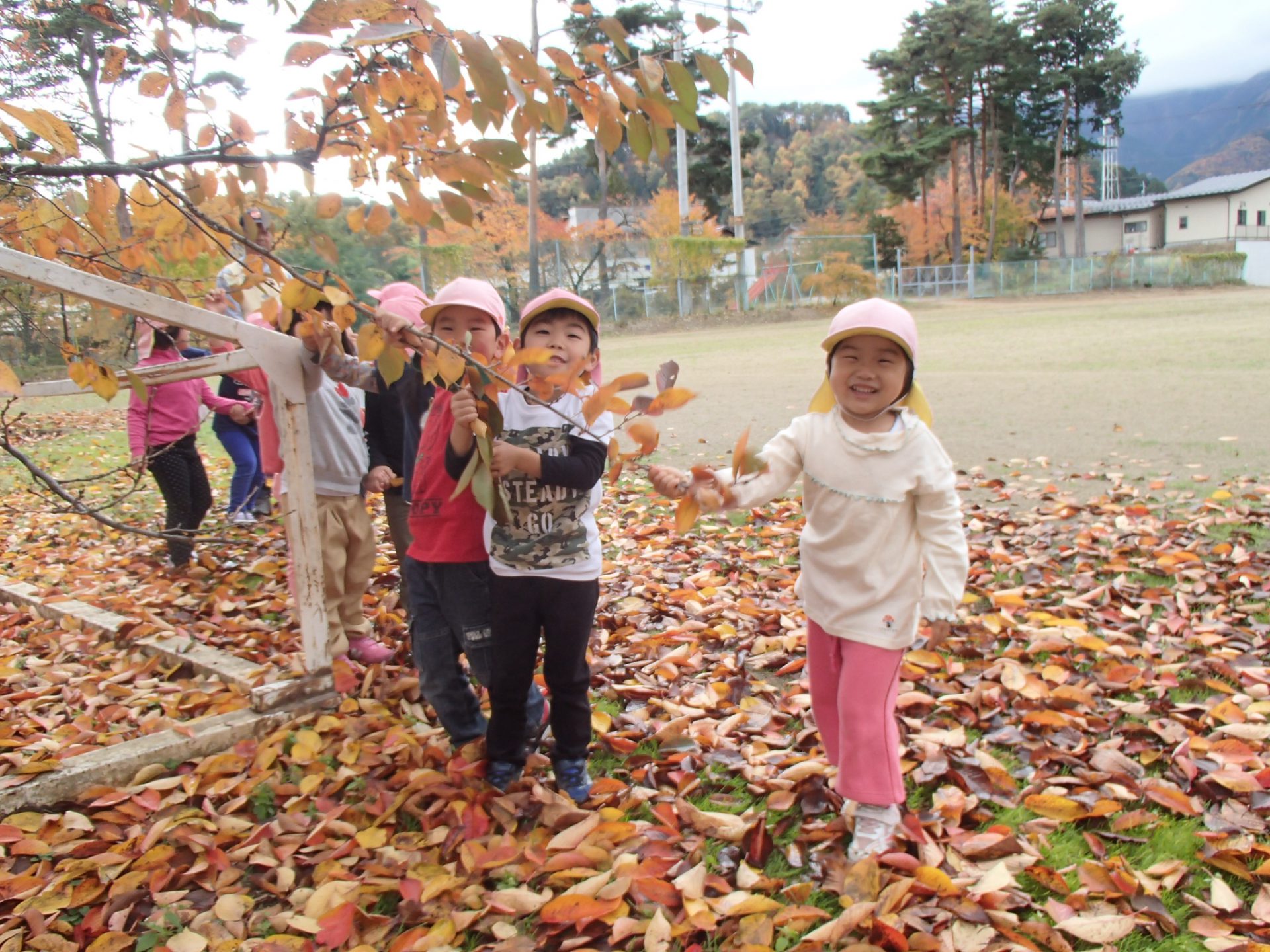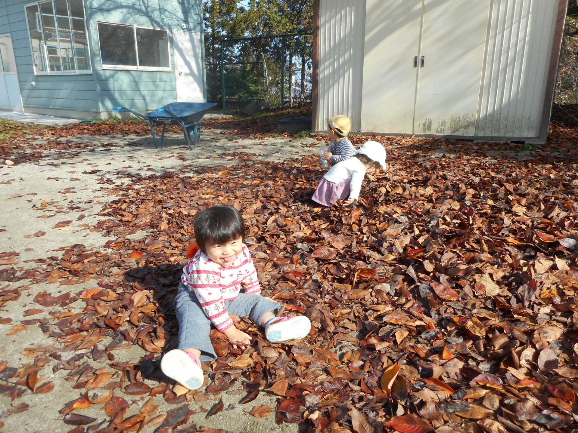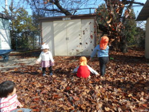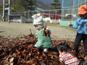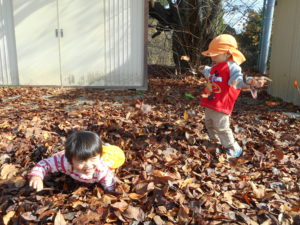 園庭で、自然物を見つけて遊ぶことがとっても得意な西部の子どもたちです。