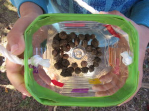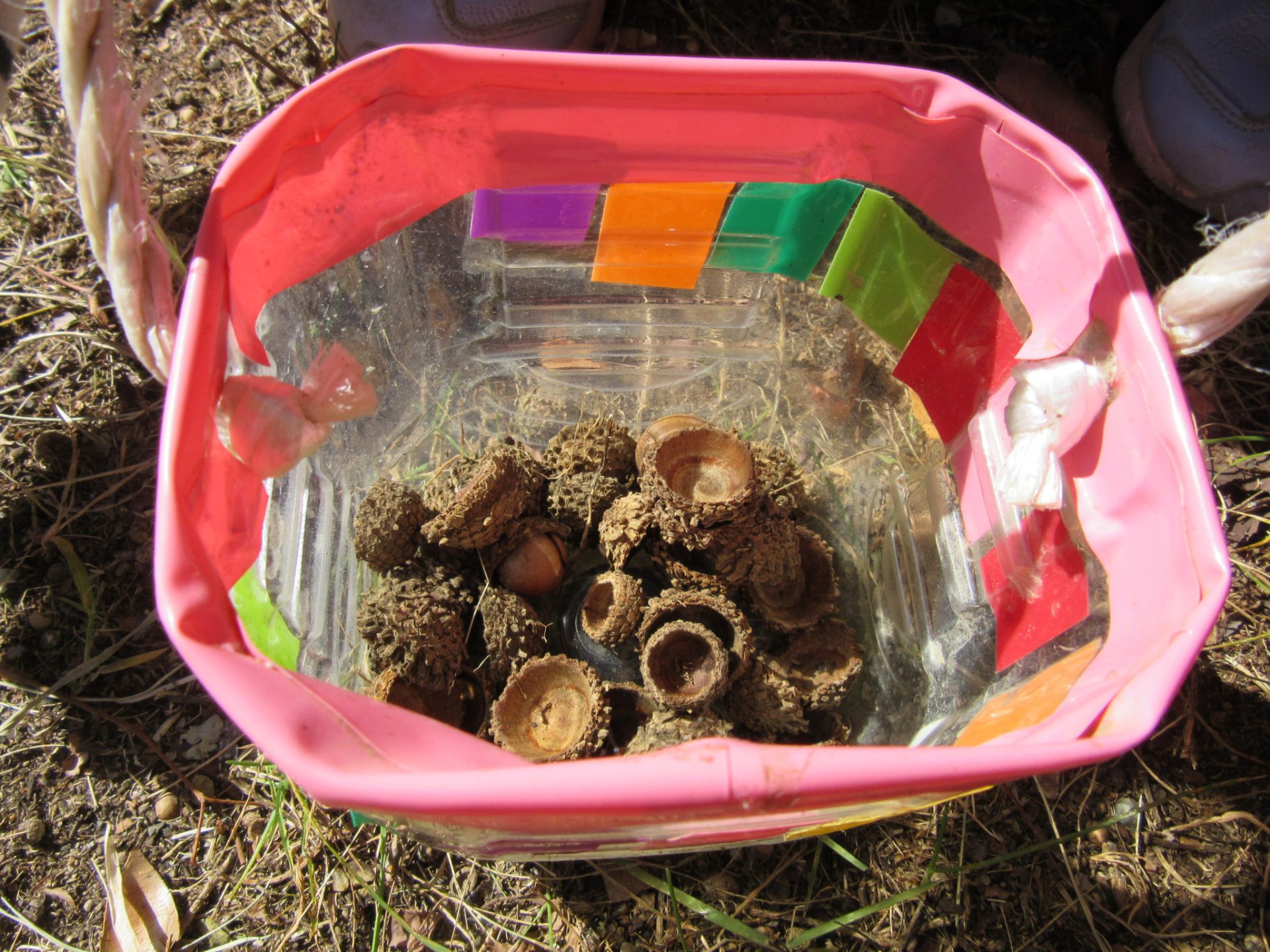 見つけた自然物を使い、友達と相談しながら遊びを膨らめていく経験をしたり、制作の素材として楽しく作品作りをしたりする経験をしてほしいと願いました。