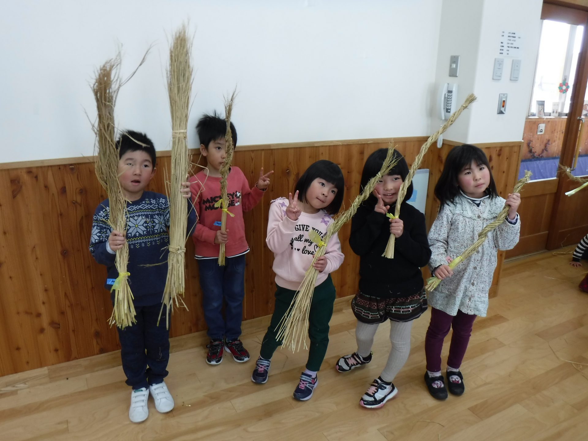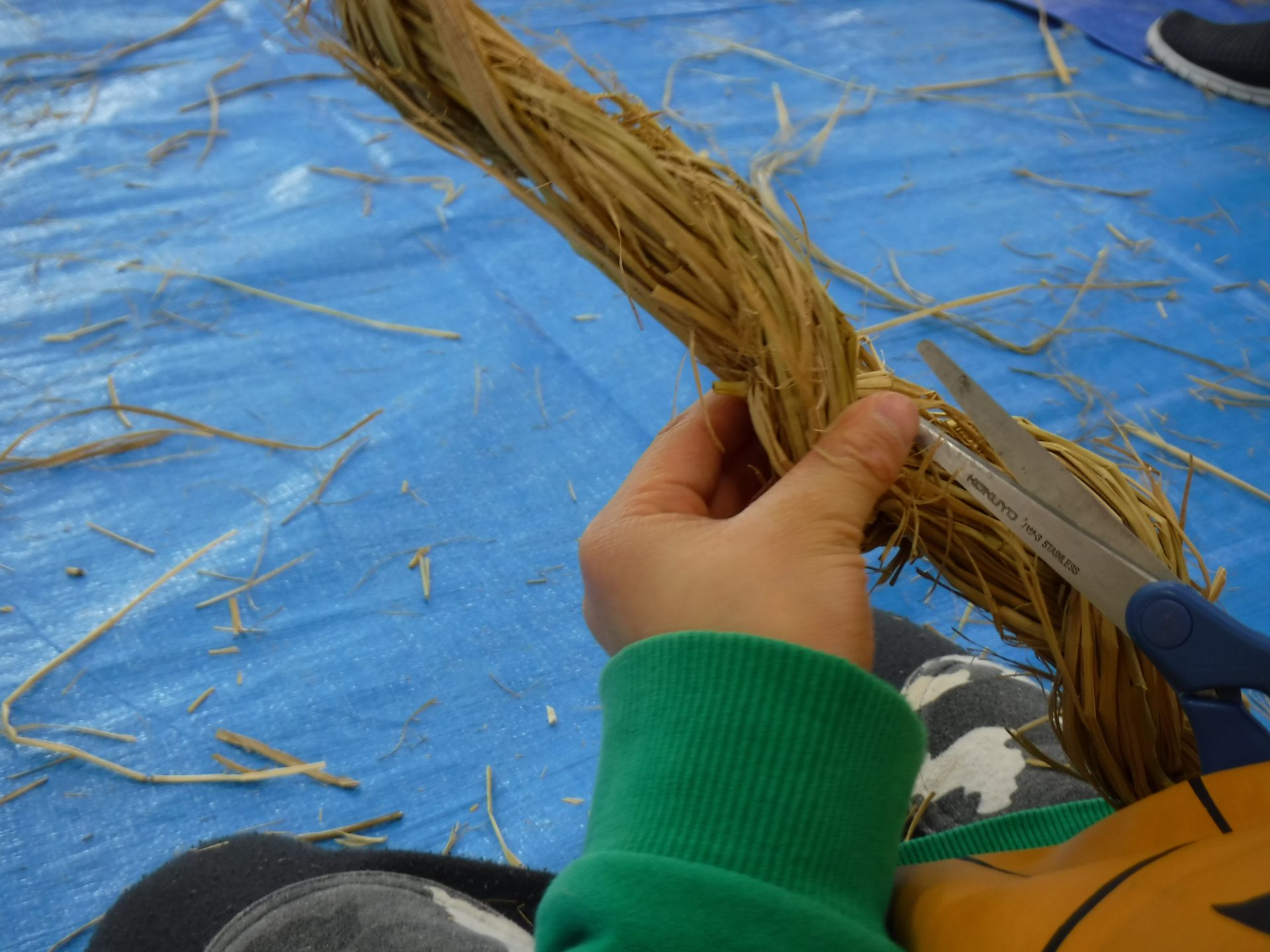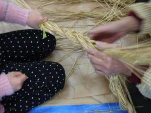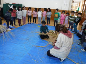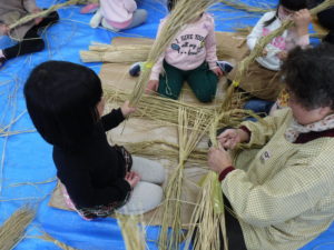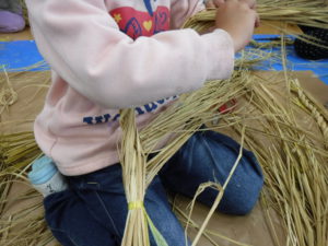 苗を植えてお米になって、収穫の後の藁が焼き芋の時に使われたり、こうして新年の飾り物になったり、次のお米の肥料になったりと、無駄なく使われていることも伝えていきたいと思ったのでした。