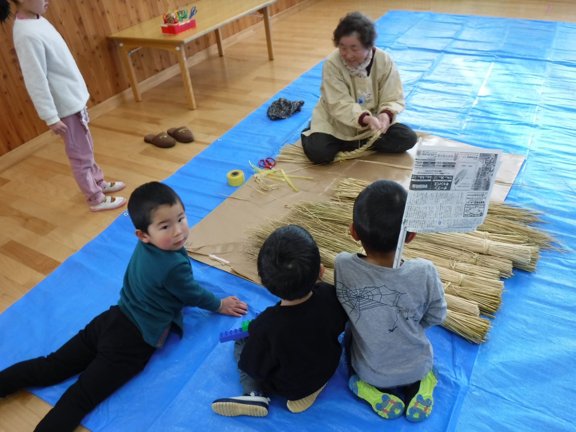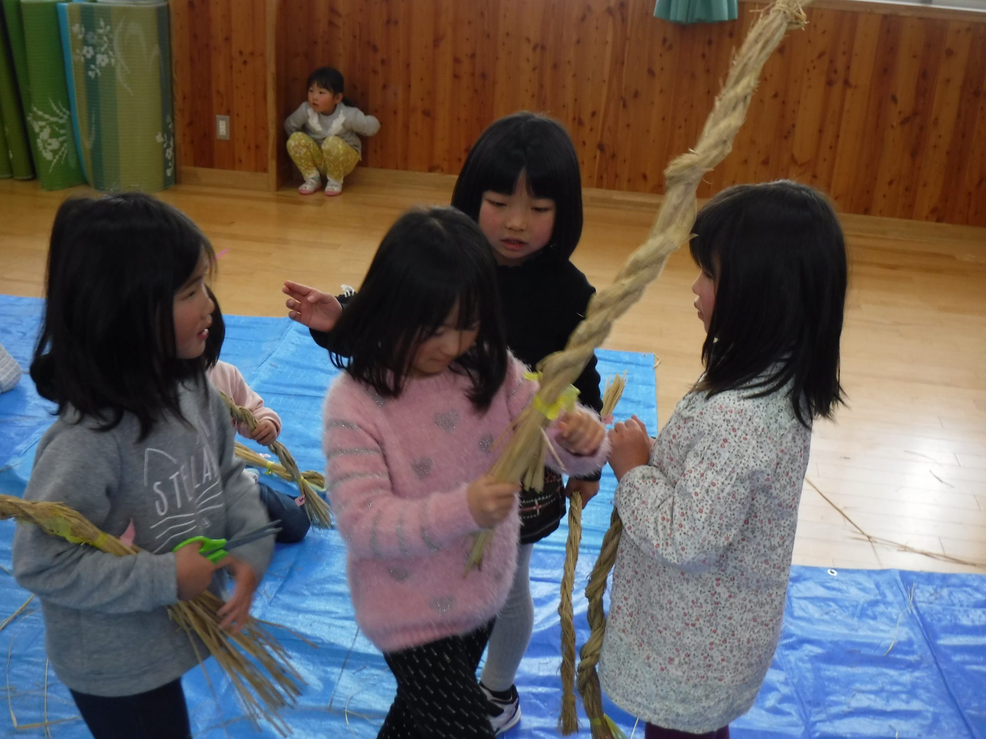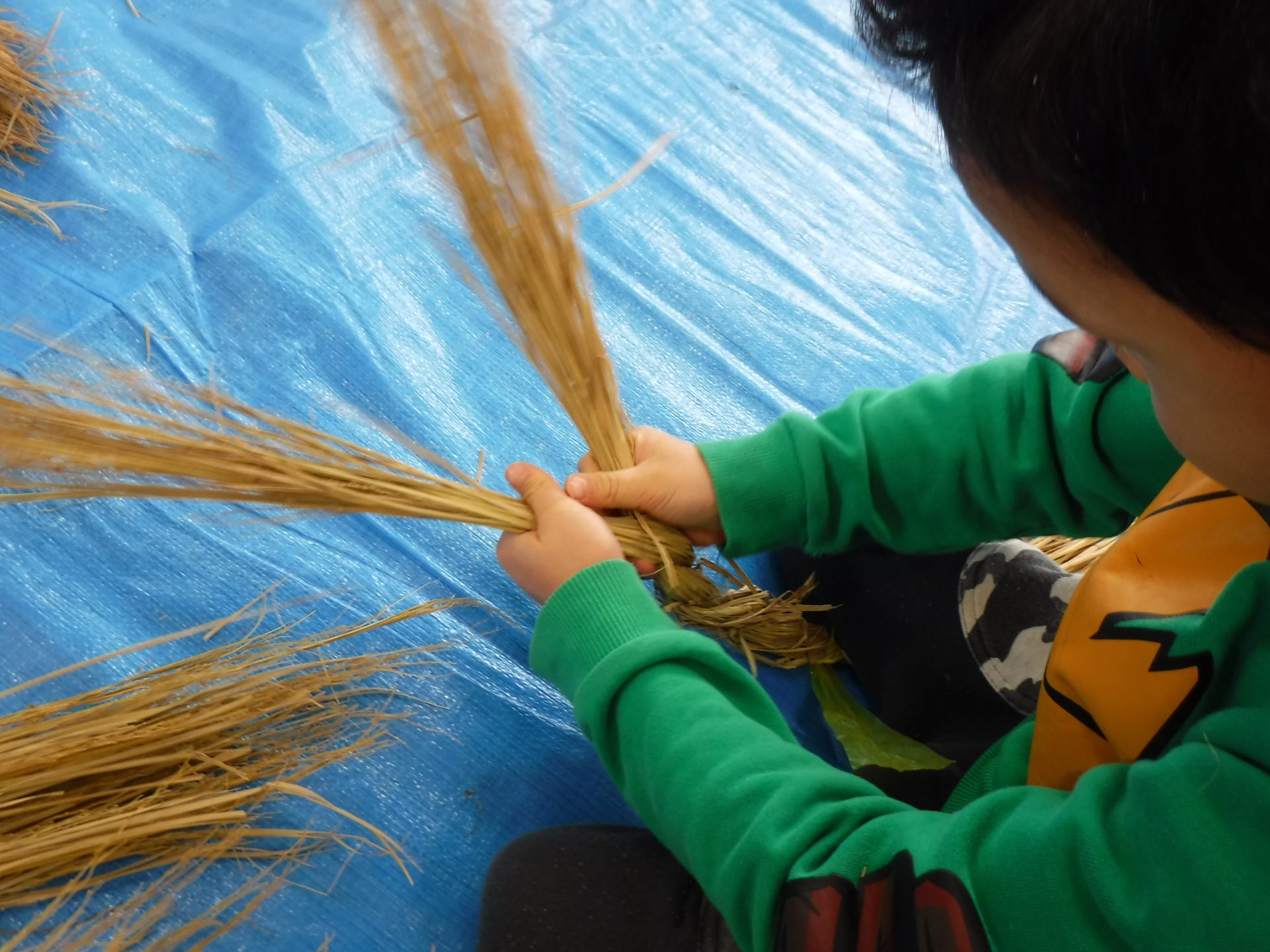 苗を植えてお米になって、収穫の後の藁が焼き芋の時に使われたり、こうして新年の飾り物になったり、次のお米の肥料になったりと、無駄なく使われていることも伝えていきたいと思ったのでした。