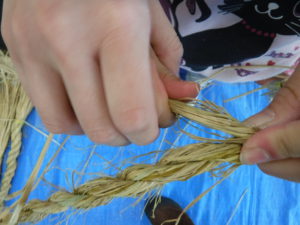 「藁を三つに分けるんだよ」
