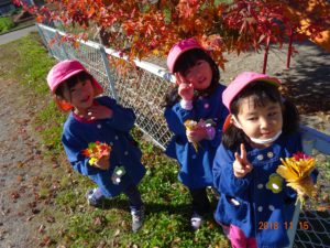 美しく色づいた葉や草花に親しみ、遊びに取り入れる