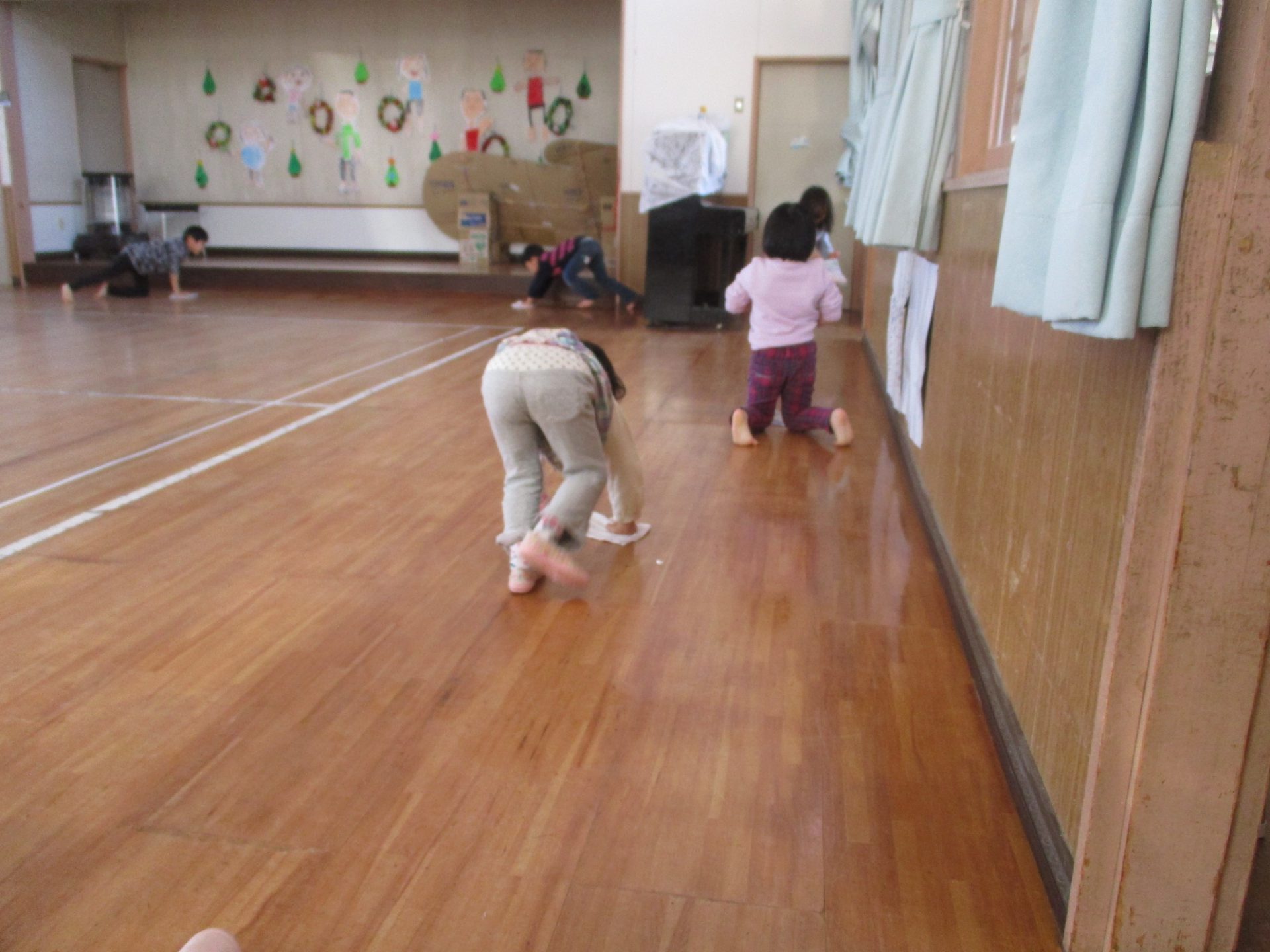 普段から雑巾掛けをしているだけあって、お尻を高く上げ、まっすぐ進んでいきます。