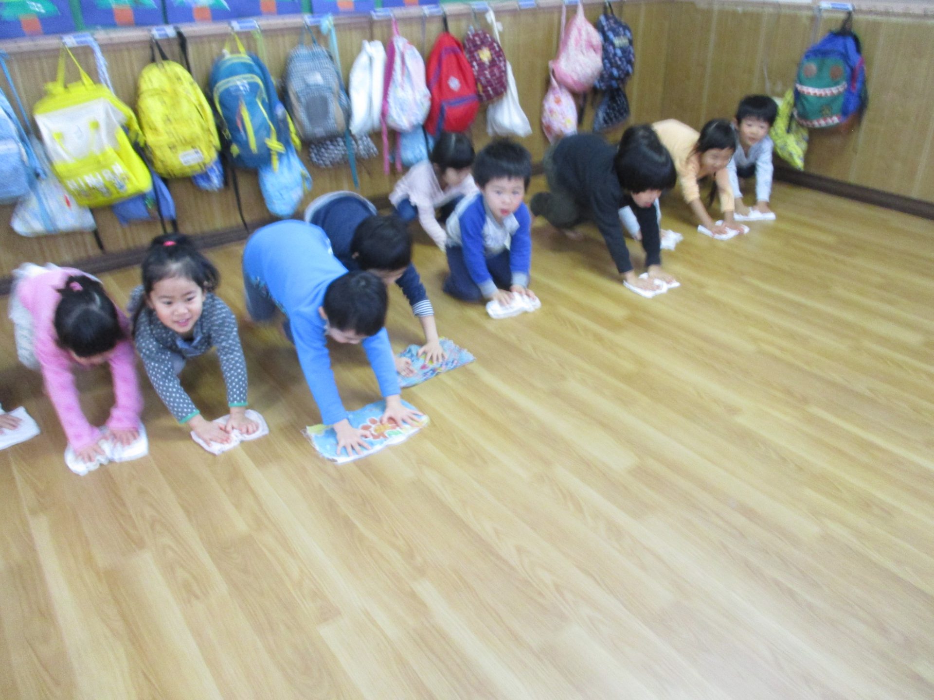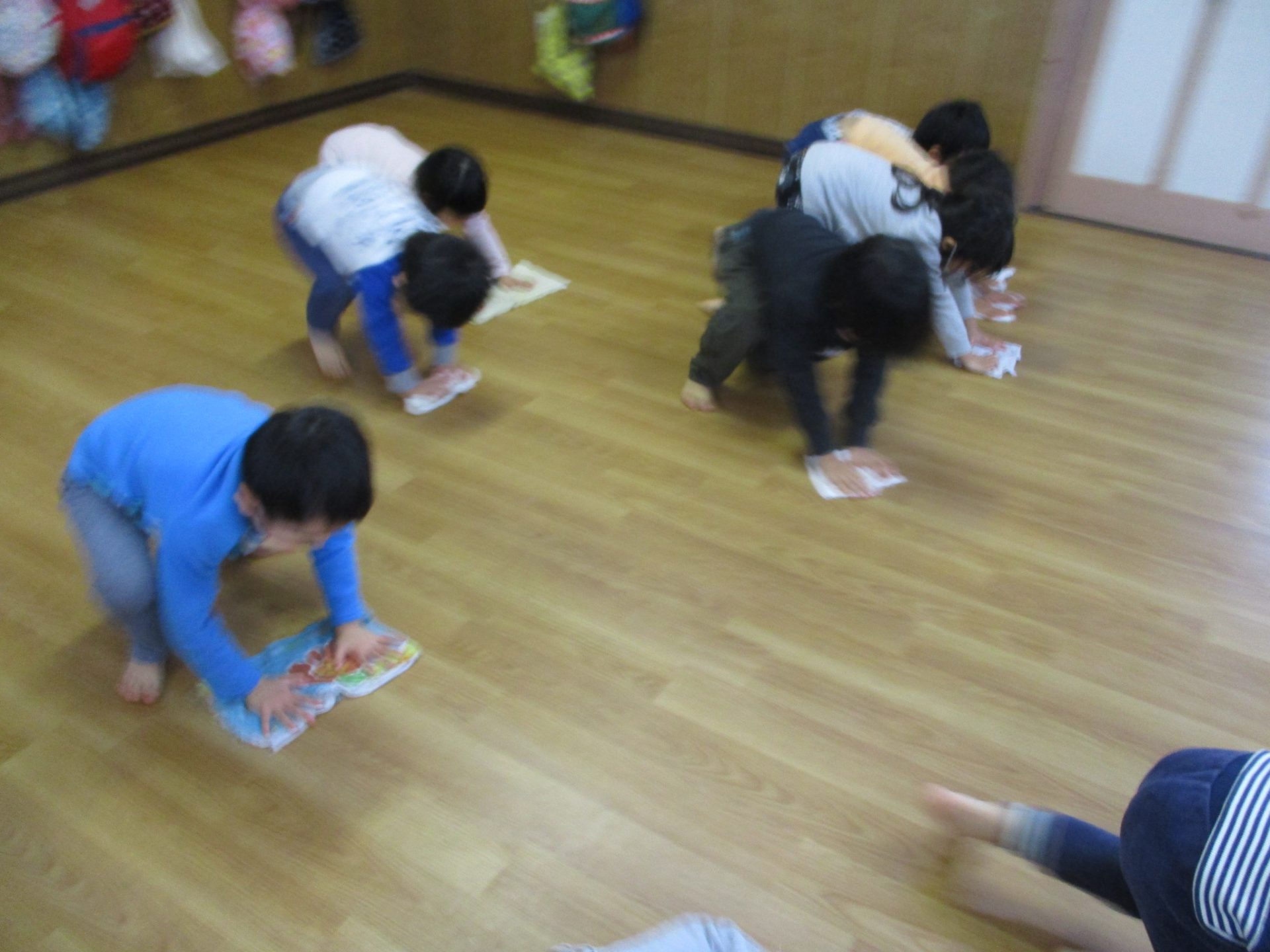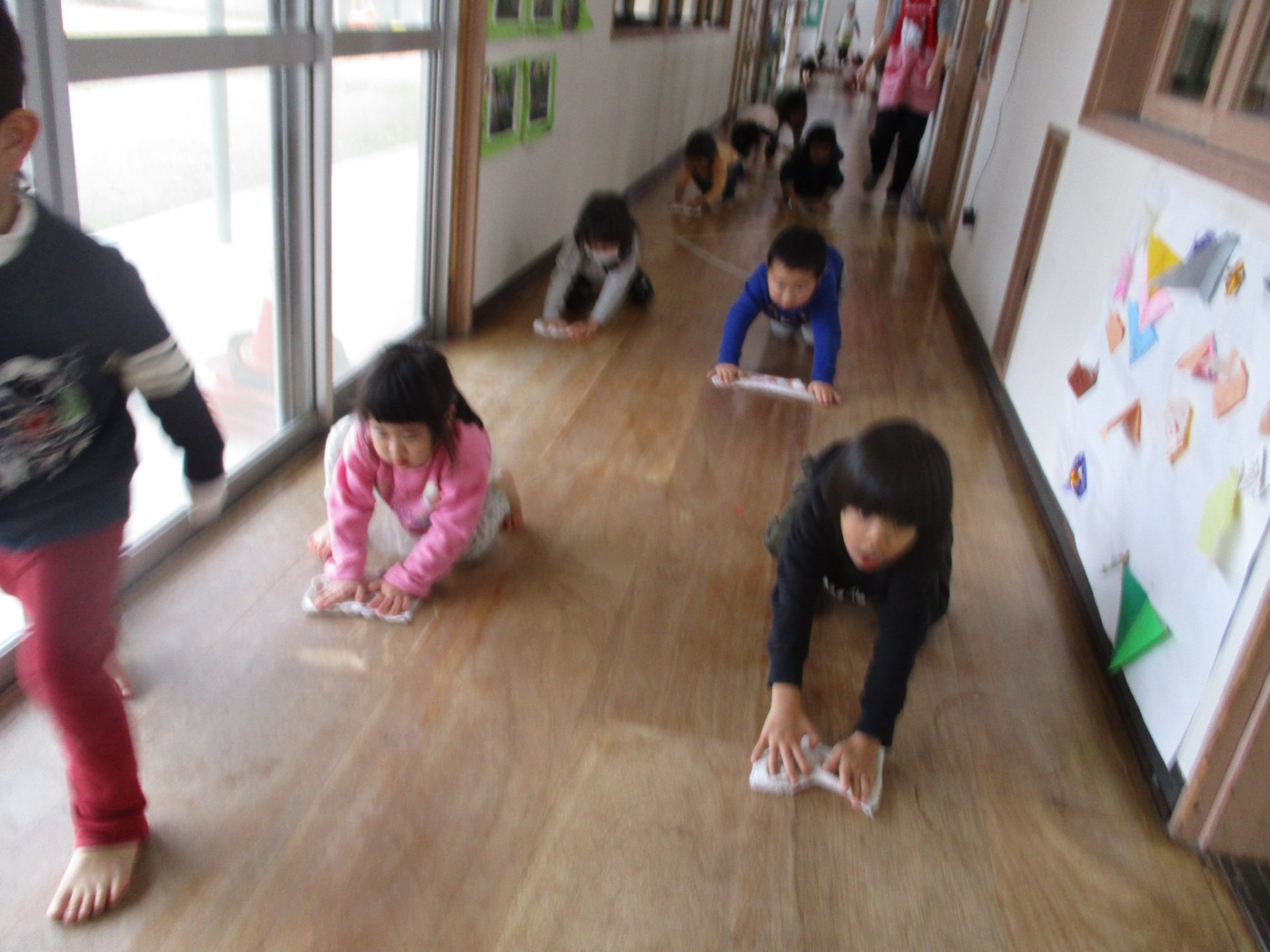 年少さんも自分たちの部屋の雑巾掛けをしました。