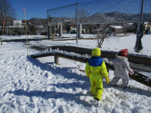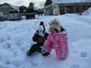 また、雪遊びを通しても、自然に年上の子が年下の子に思いやりを持つ場面があったり、発見や気づきを楽しんだりと子ども達の育ちを見ることができました。子ども達が季節を感じながら自然の中で遊ぶことができる環境の良さを改めて感じました。四季折々の自然を楽しめる信濃町。冬は氷や雪に触れながら、信濃町の子どもらしく冬を楽しめるように活動していきたいと思います。