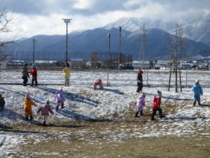 みんなで遊ぶと雪はあっという間に消えてなくなってしまいましたが、「早くいかなくっちゃ」「なくなっちゃう」と外へ飛び出していく子どもたちから、雪遊びへの期待を感じました。