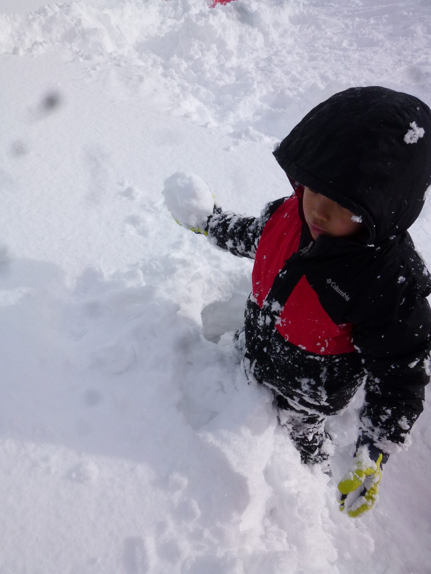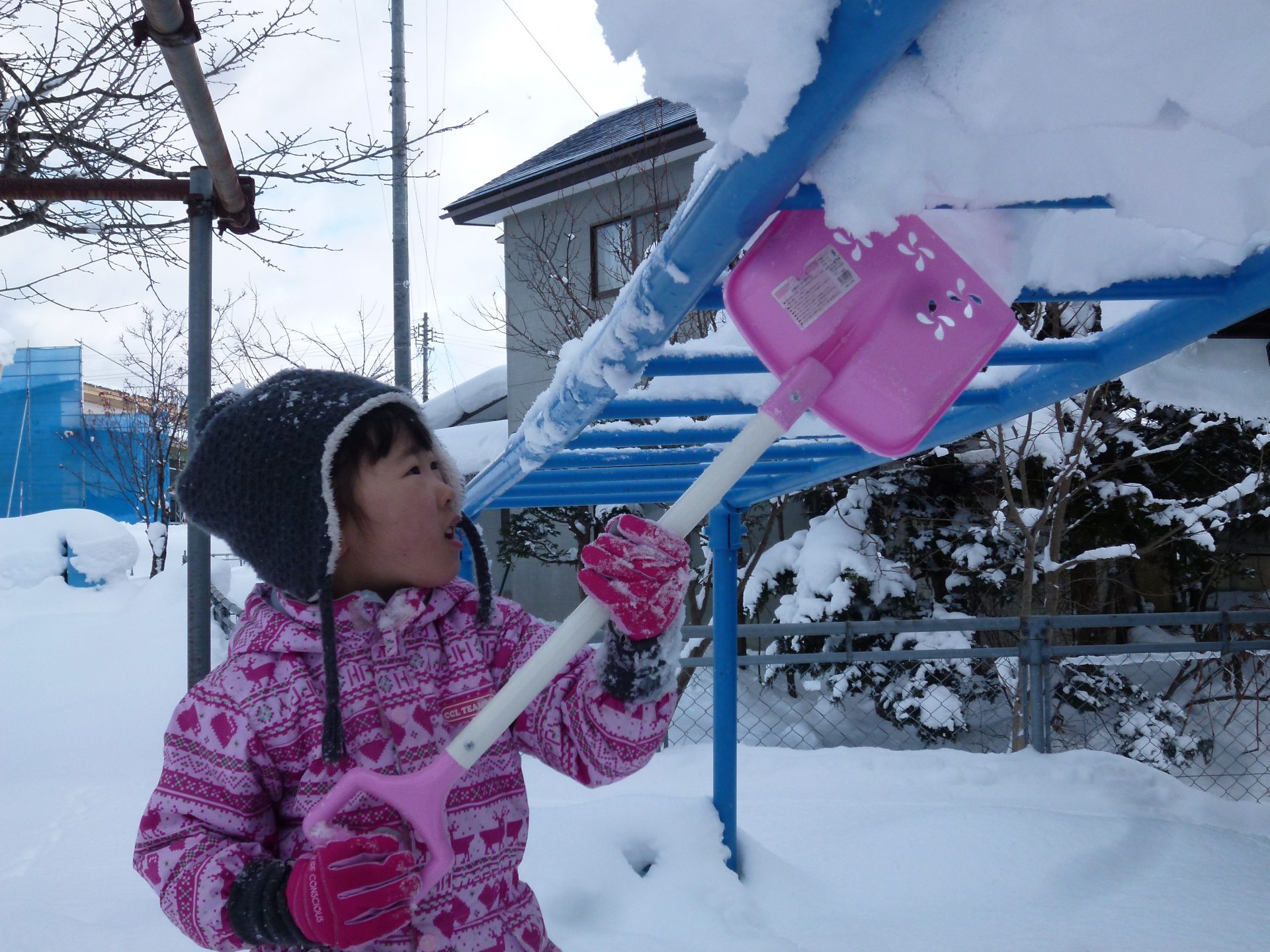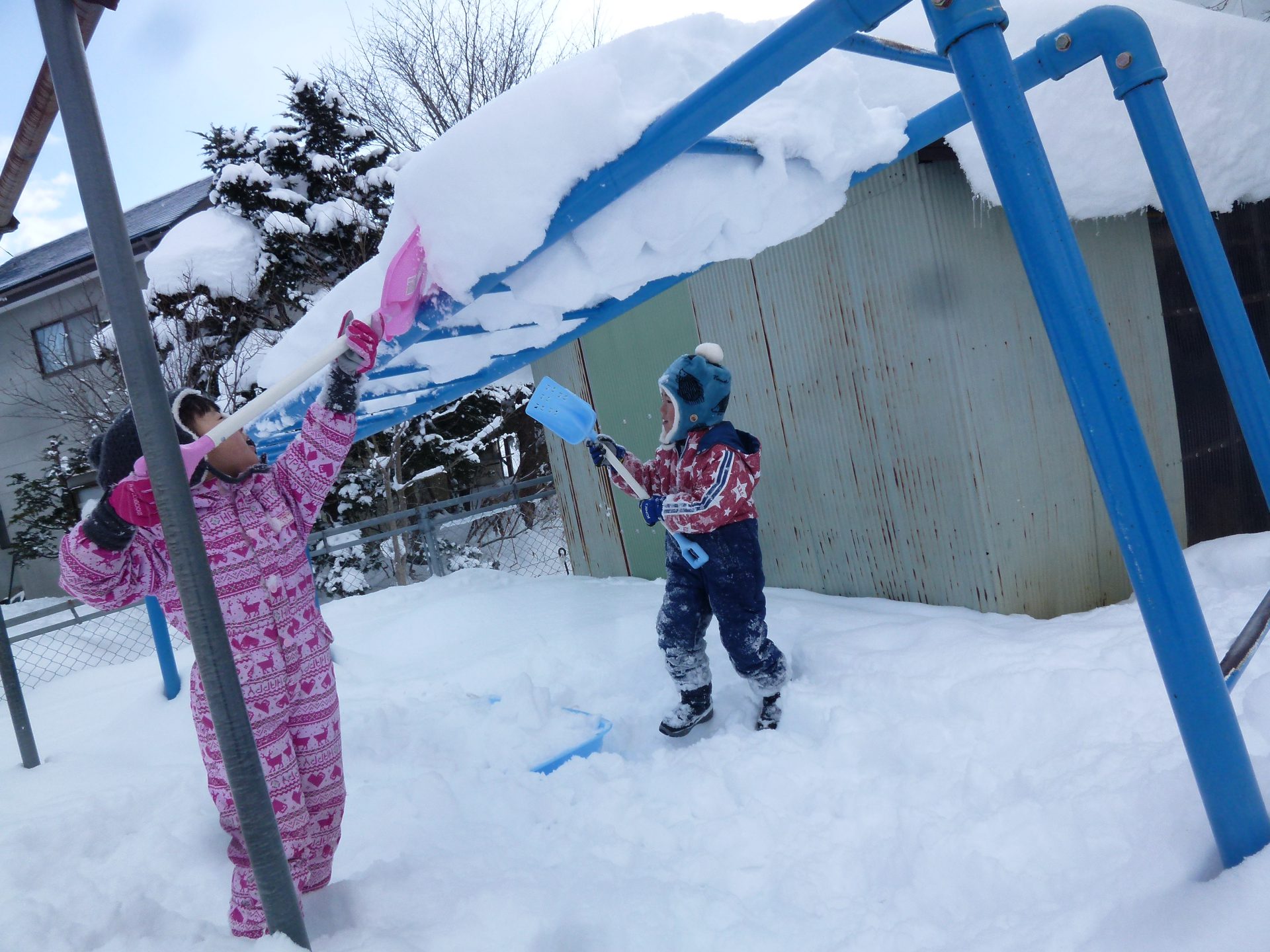 「見て!こんなところにも雪が積もってるよ!」「雪取ってるの!」