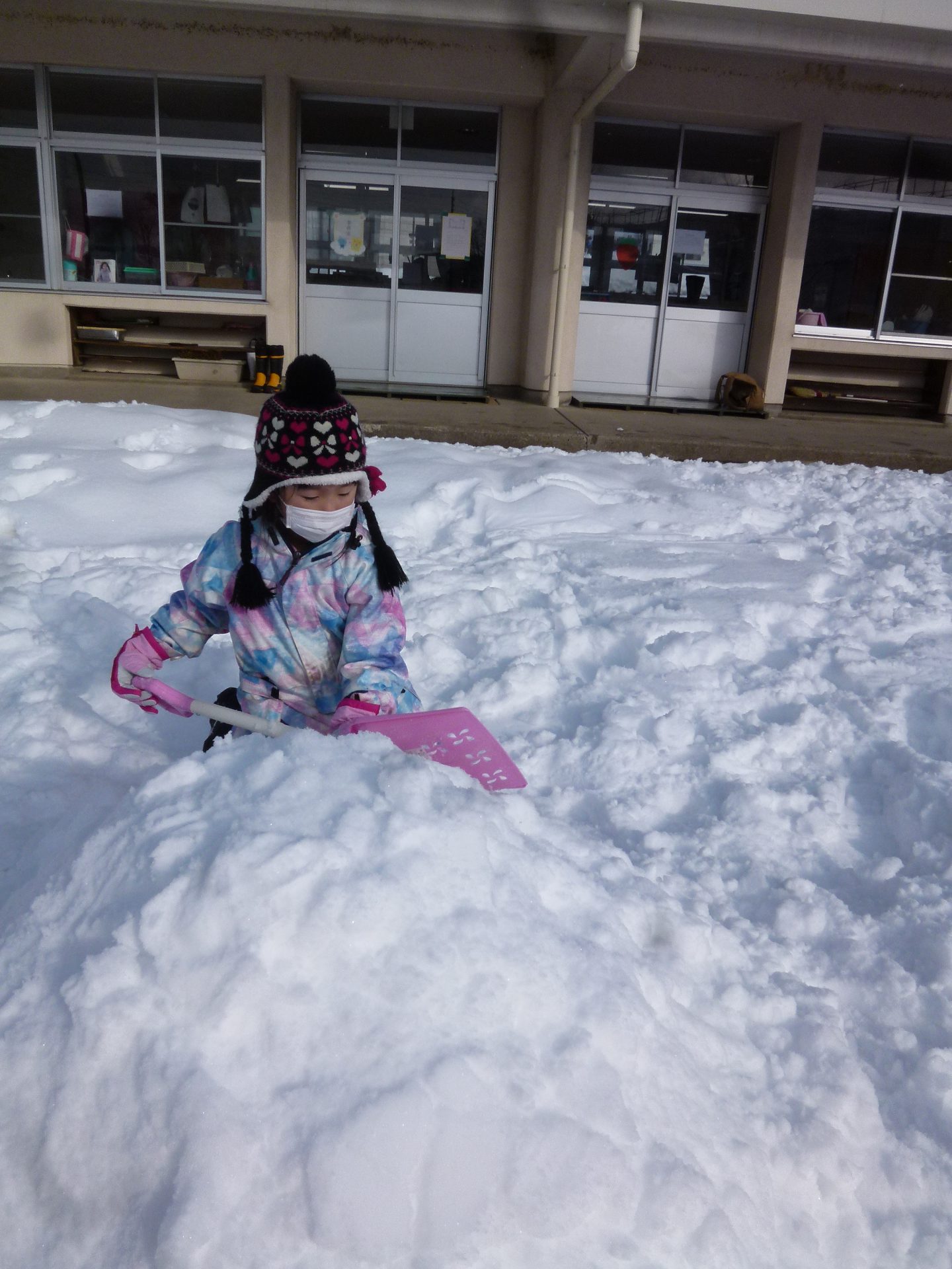 スコップを手に取って黙々と作っていました。「かまくらを作ろうかな〜」