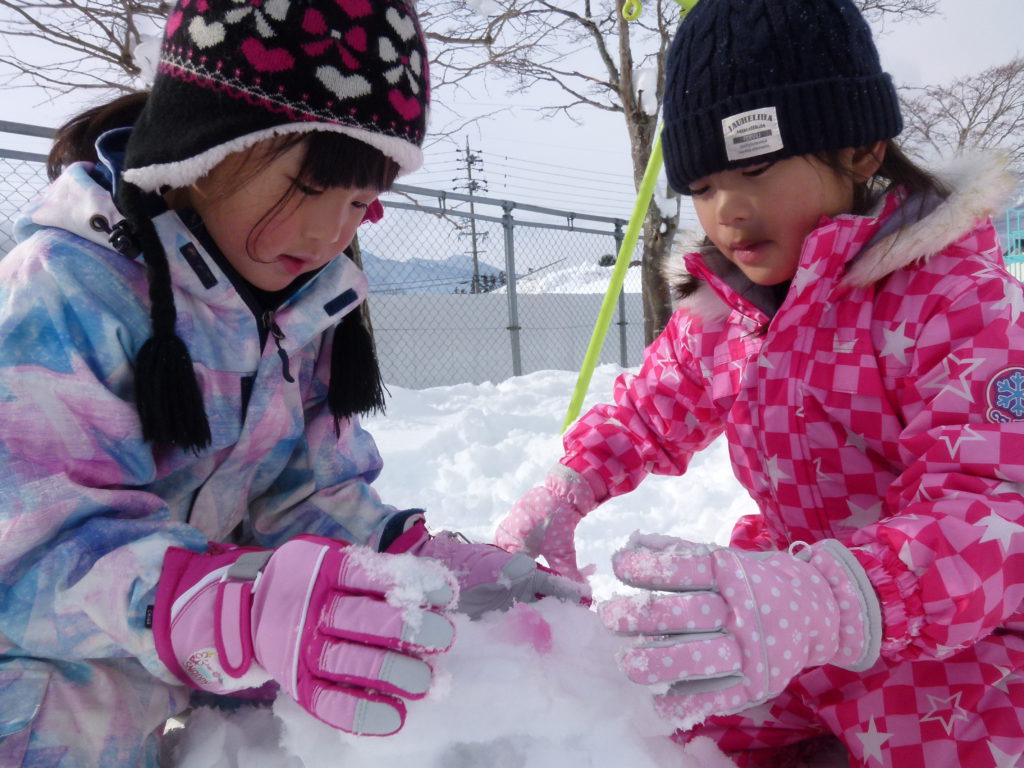 まだまだ雪遊びを楽しめるので、思う存分楽しめるような環境を整えたり、また子ども達が雪遊びをする中で気づいたことや発見したこと、不思議さなどに共感しながら体も心も豊かになってほしいと思います!