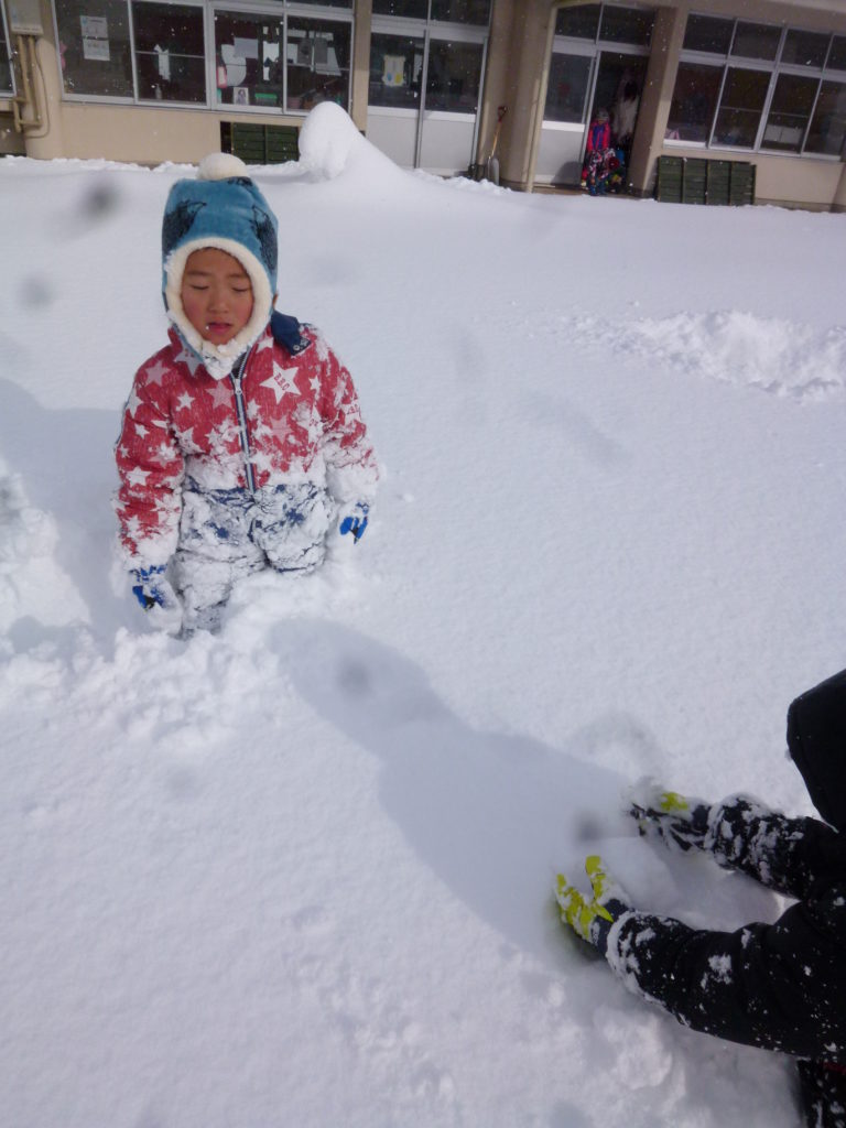 雪は子ども達の膝の高さまである所や場所によっては子ども達の腰あたりまで積もってる所もありました。