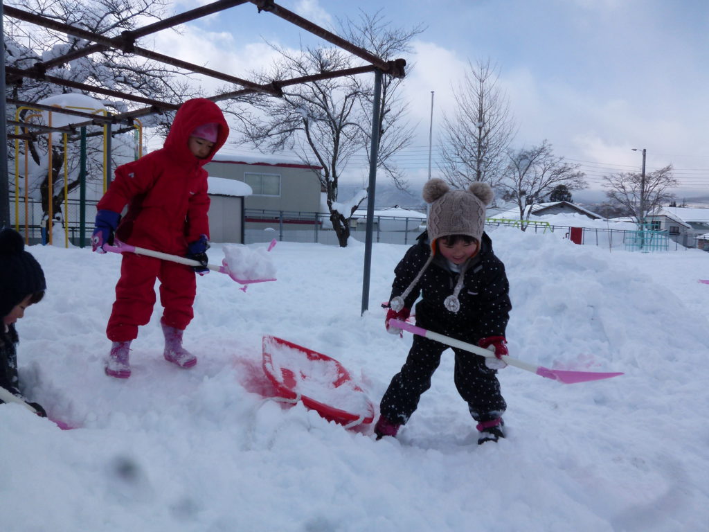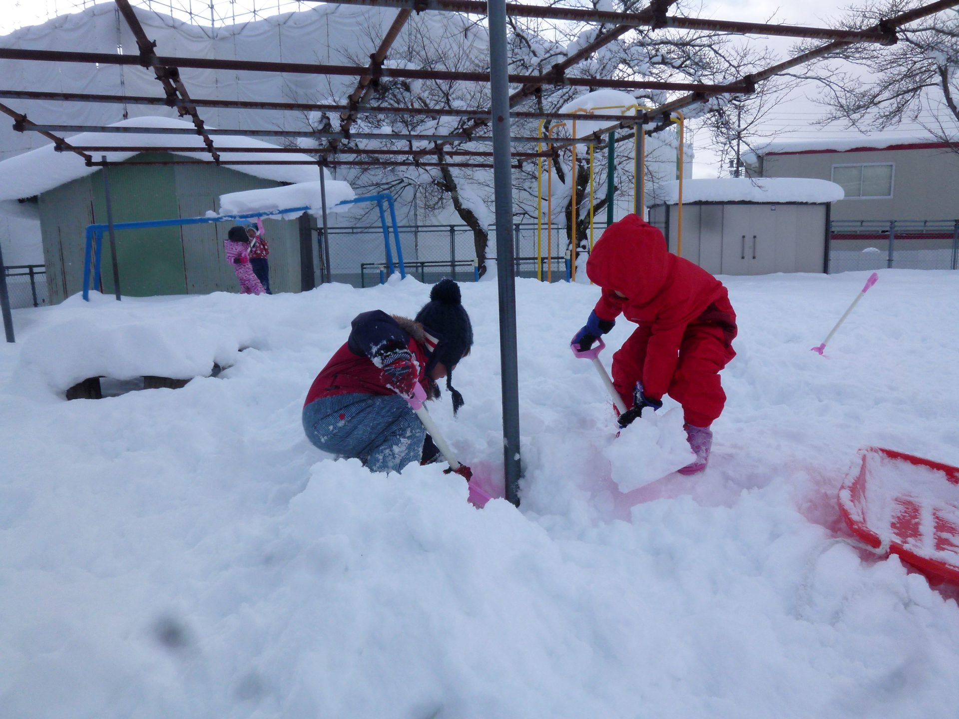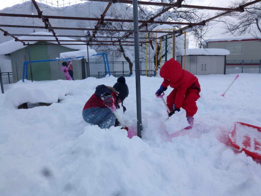 信濃町は豪雪地帯と言われるほどたくさん雪が積もります。しかし、ここ数年雪も少なくなってきて保護者の方と話の中でも「雪かきが少しずつ楽になってきてるよね!」と大人は喜んでいた最中の今回の雪、、