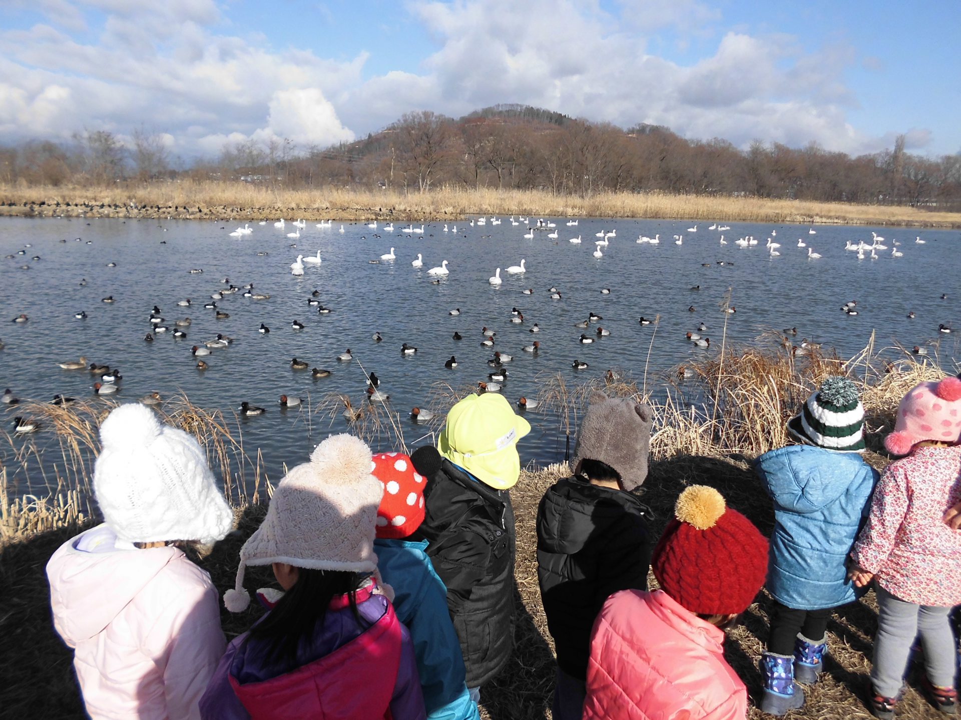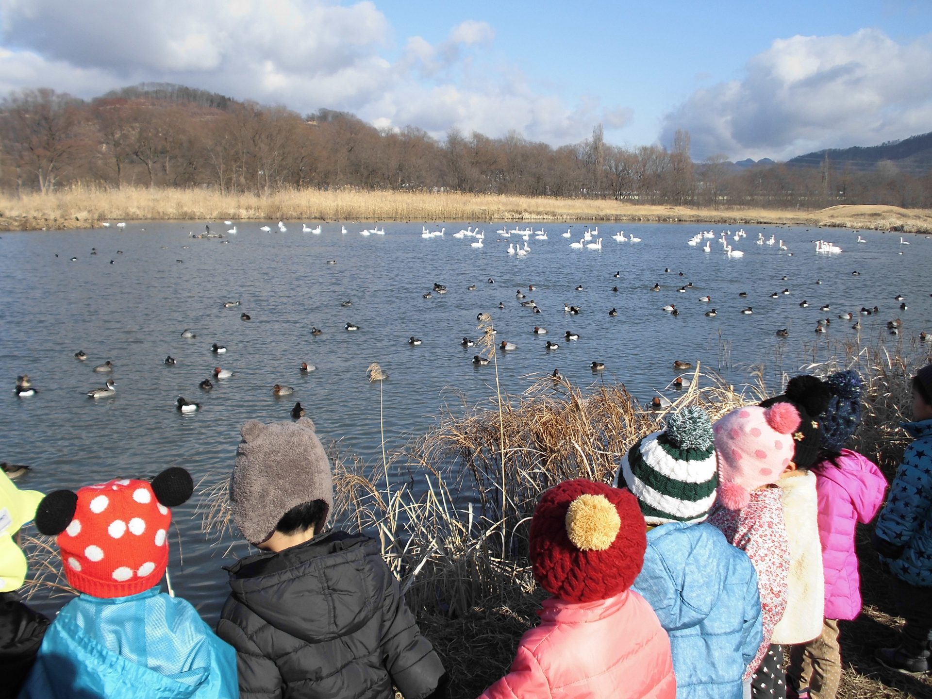 「あっ、かもさんがいる!!」「白鳥さんがいる!!」