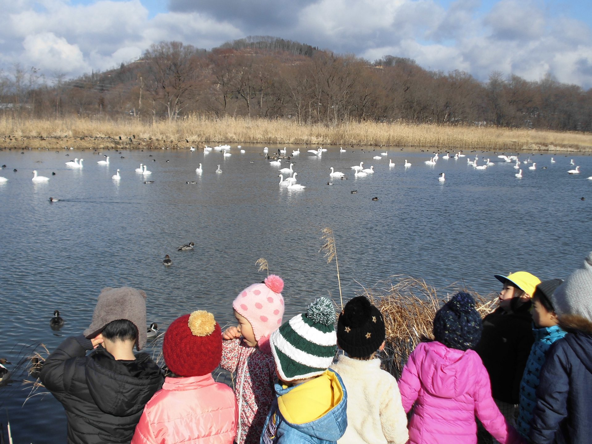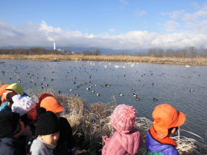 冬の到来と共に飛来する『白鳥』の様子を、実際に観察することで、子どもたち自身の気づきが、 たくさん聞こえてきました。