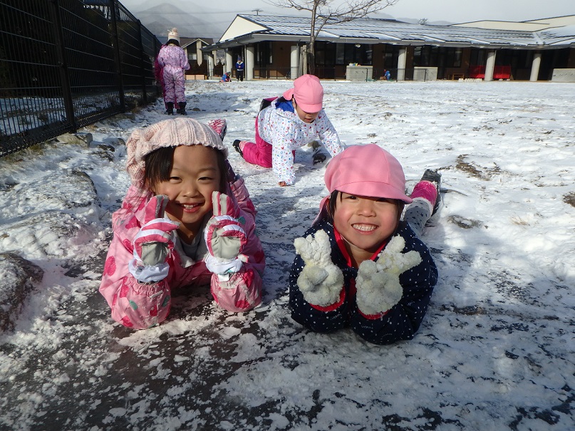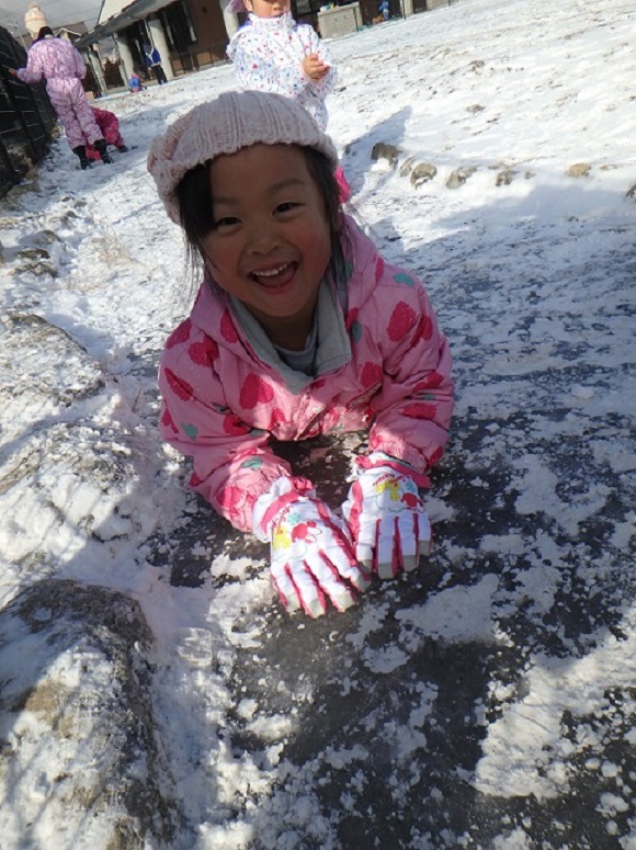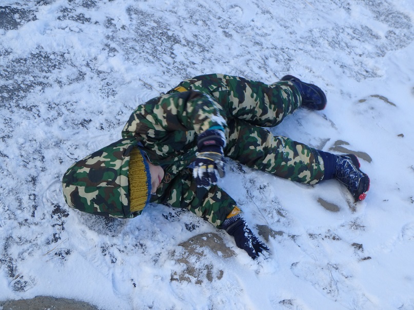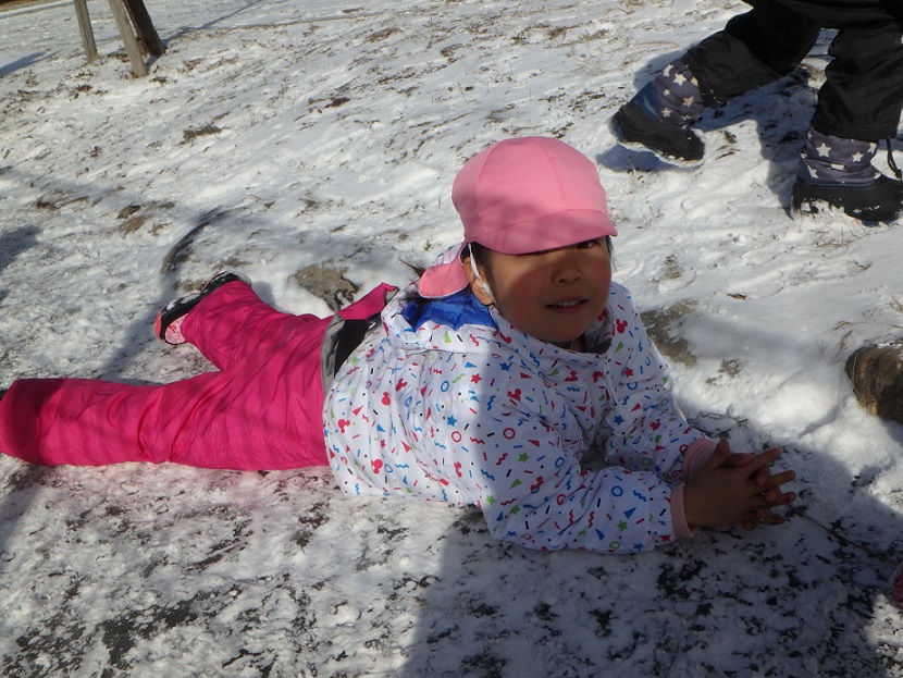 寝転がってからだじゅうで雪と氷の感触を楽しんでいるのだと思いました。