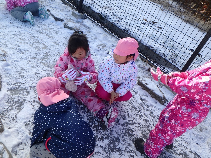 帽子を赤ちゃんにすると氷の上でもお母さんごっこができるね。