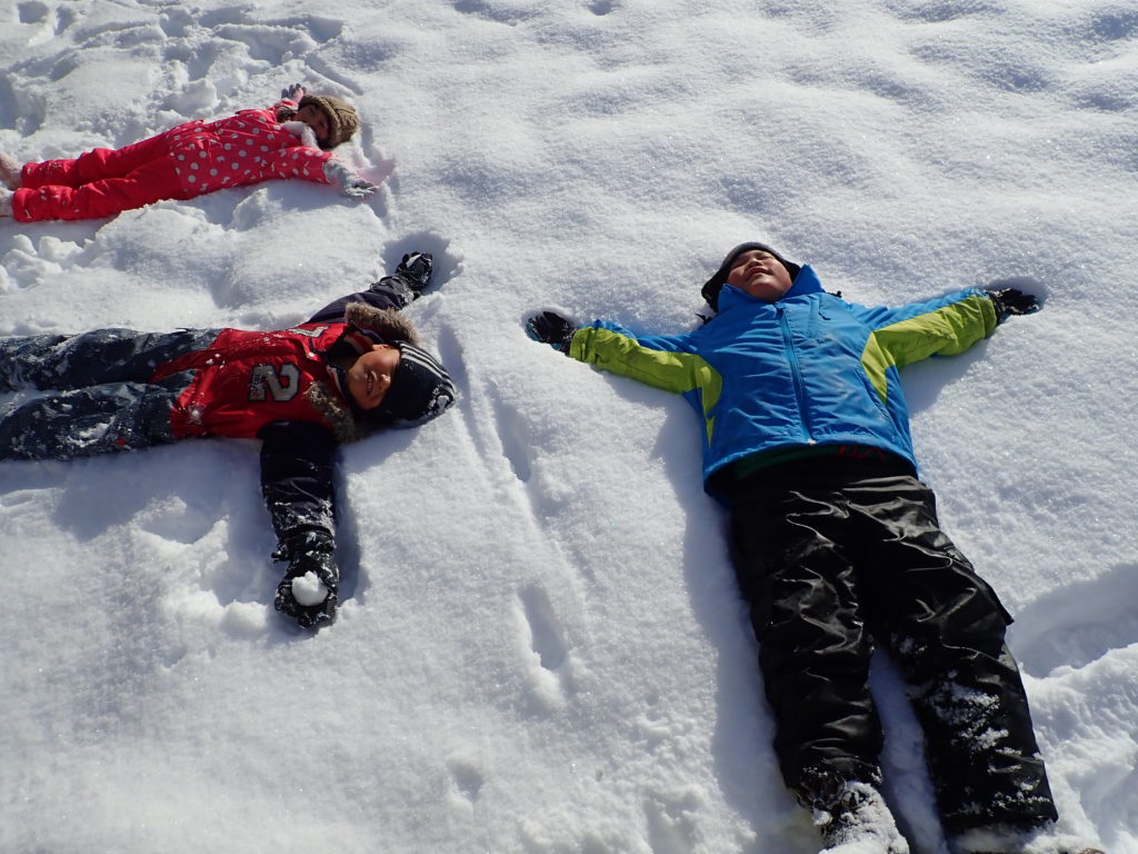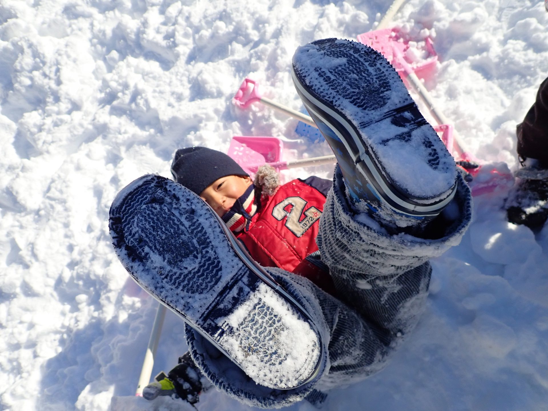 「転んでも痛くないよ〜」と喜んでいました。雪の感触を全身で味わってますね!