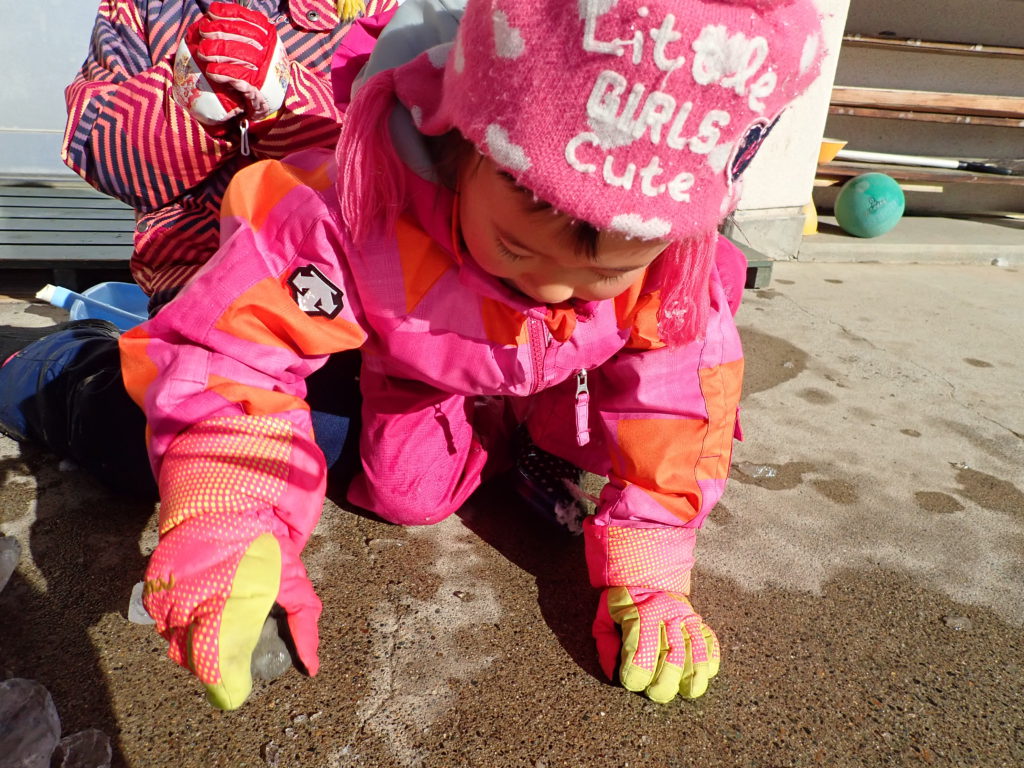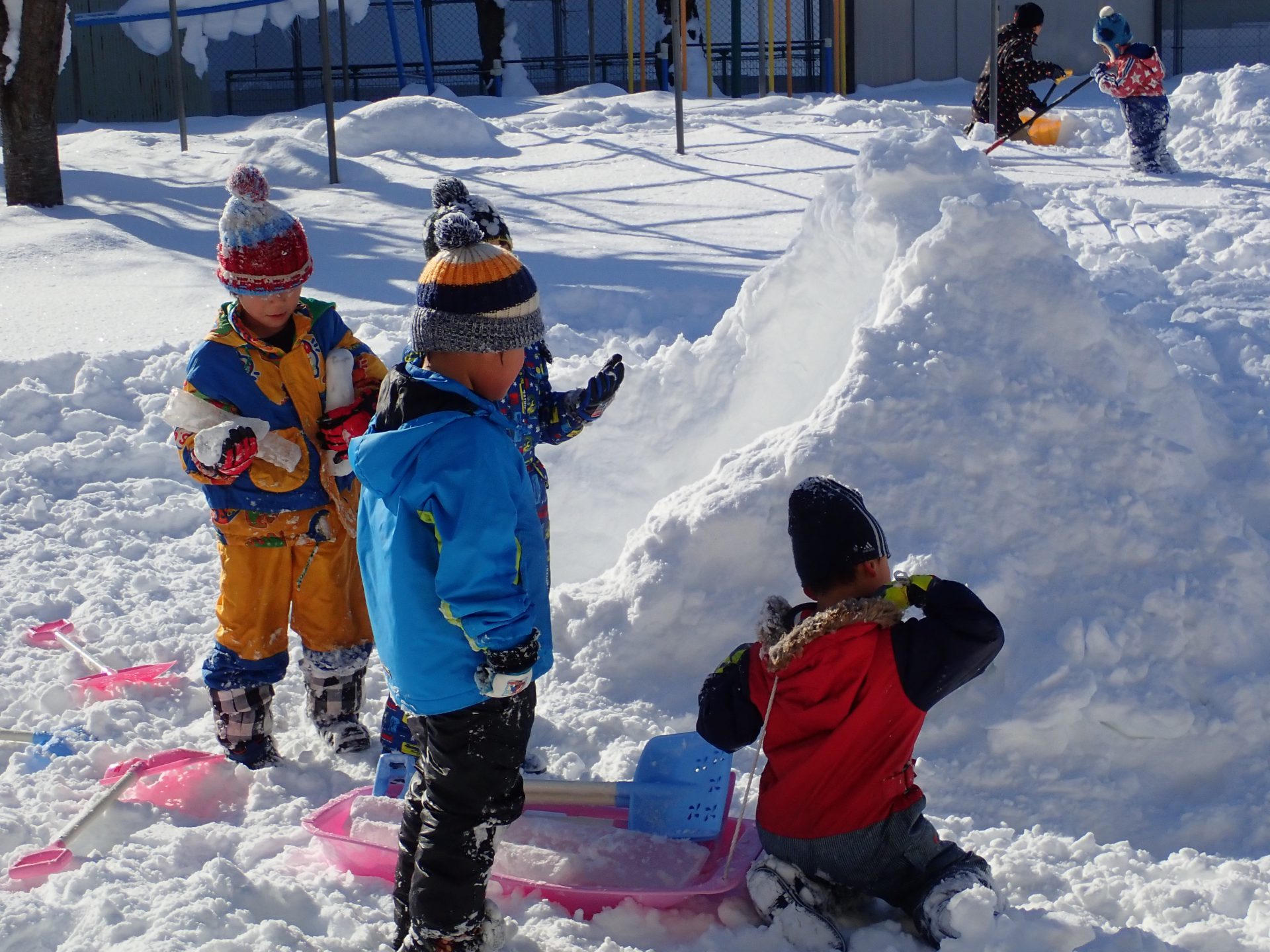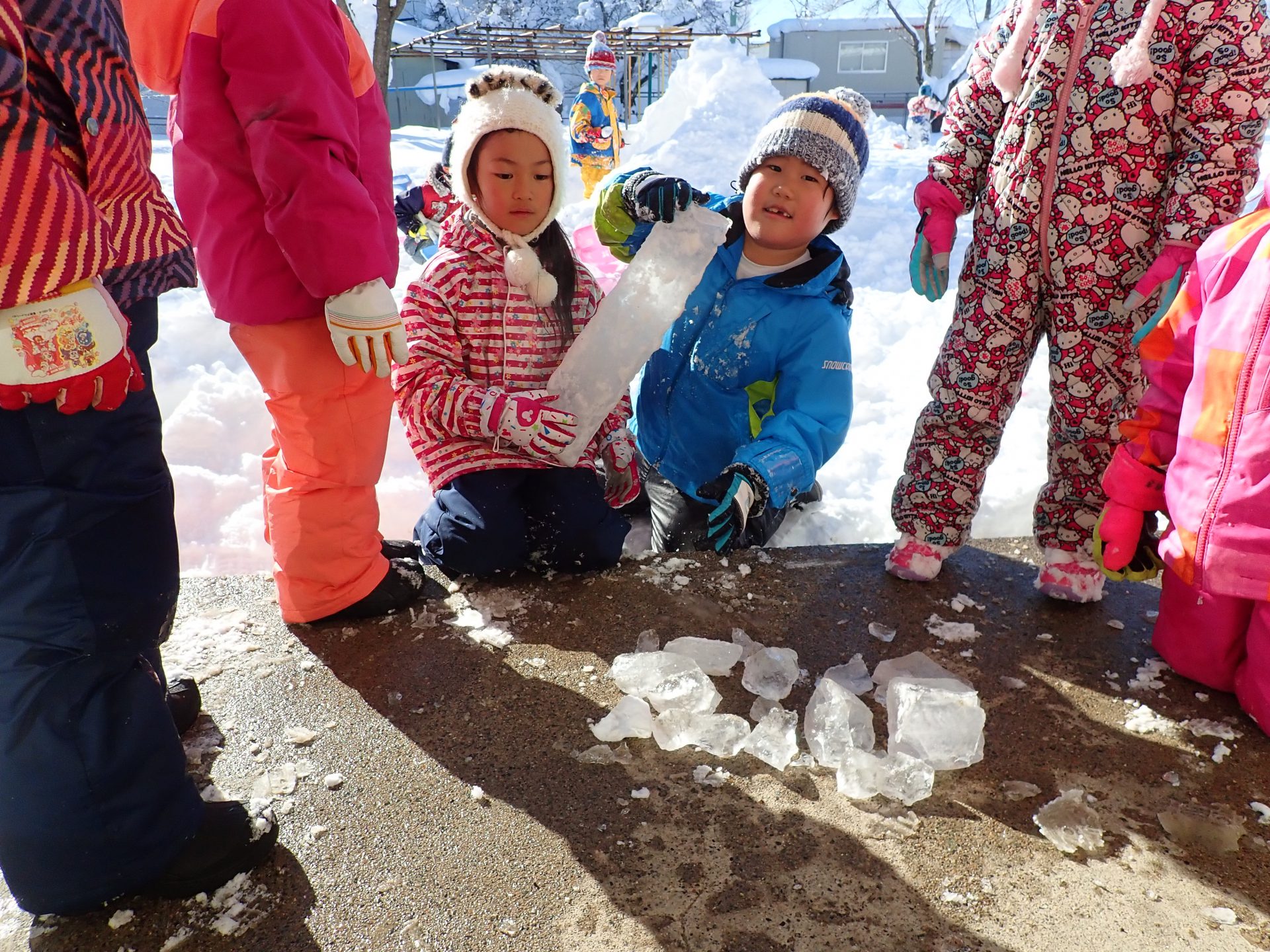 かまくらを作って、そこに保育士からもらったツララをしまいこんでいました。