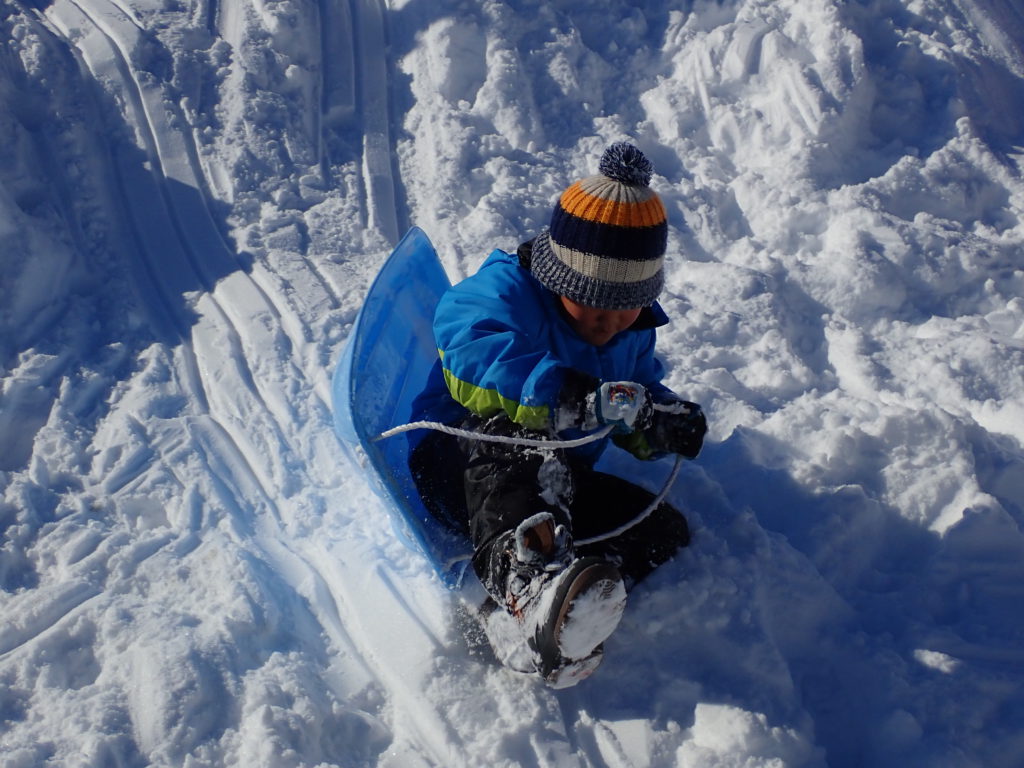 さてこちらでは雪山でそり遊びを楽しむお友達。